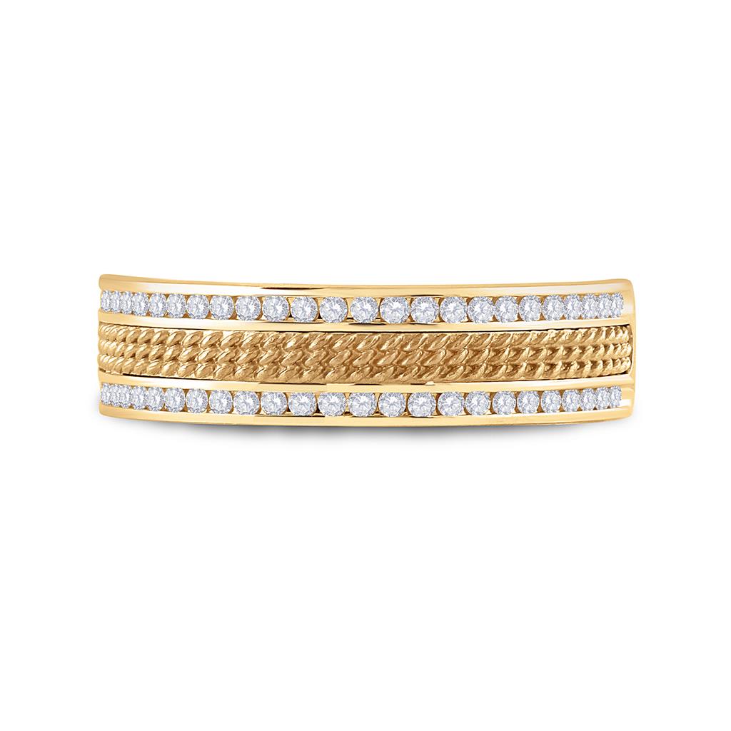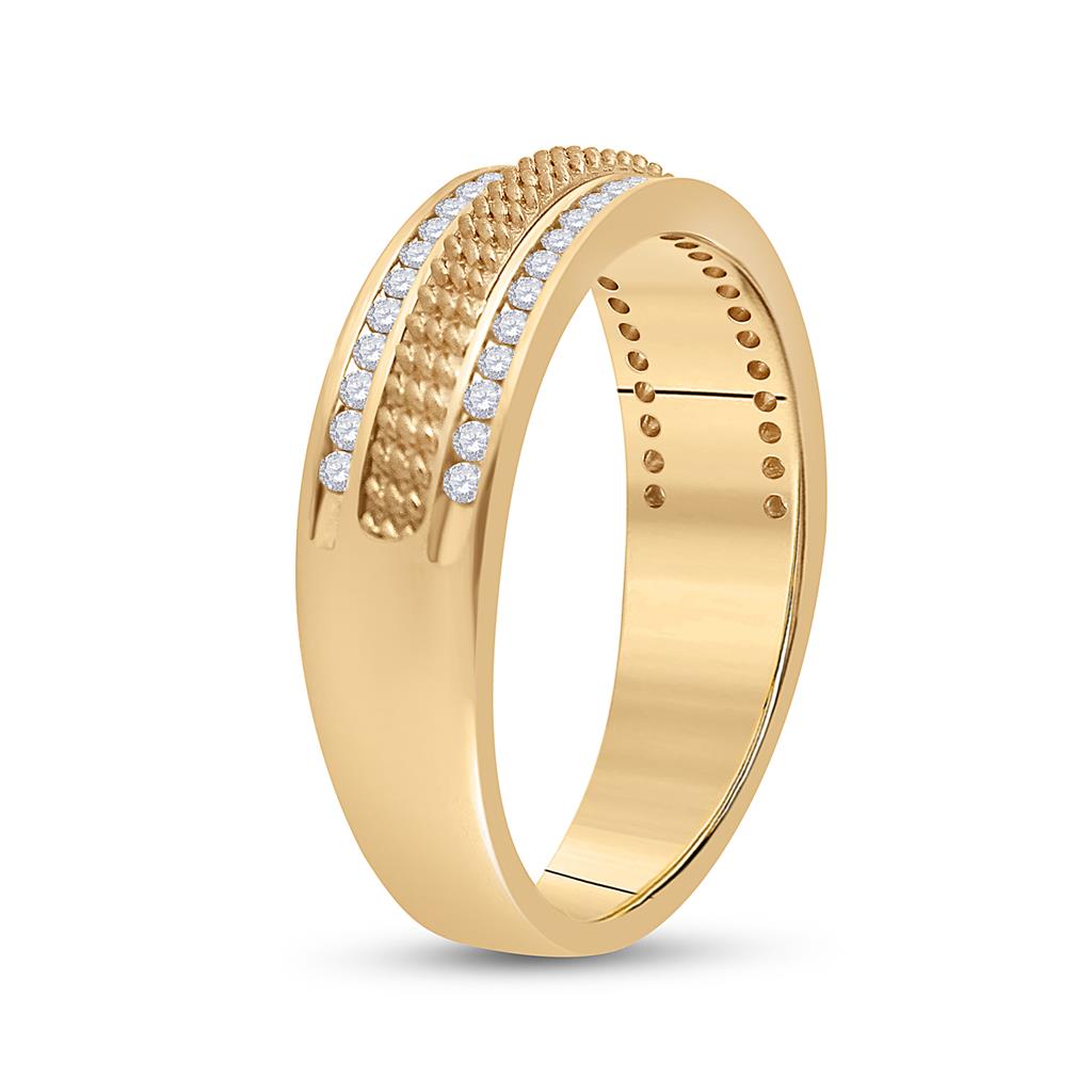14k Yellow Gold Round Diamond Wedding Textured Band Ring 1/3 Cttw