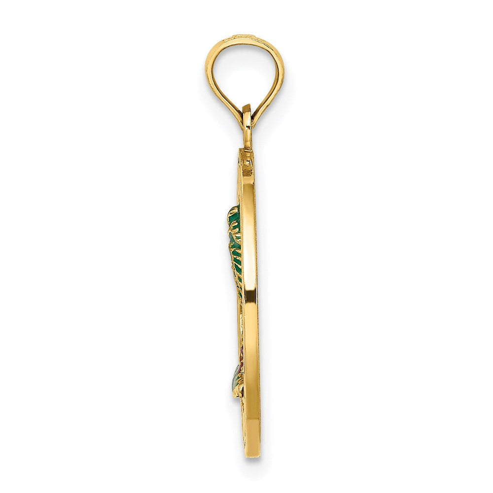 14k Yellow Gold SIESTA KEY FL Enameled Palm Tree Circle Charm