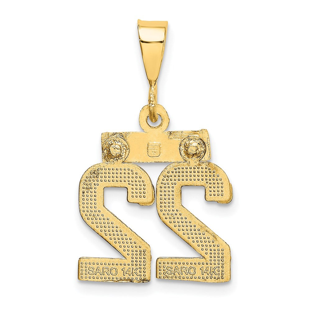 14k Yellow Gold Small Brushed Diamond-cut Number 22 Charm