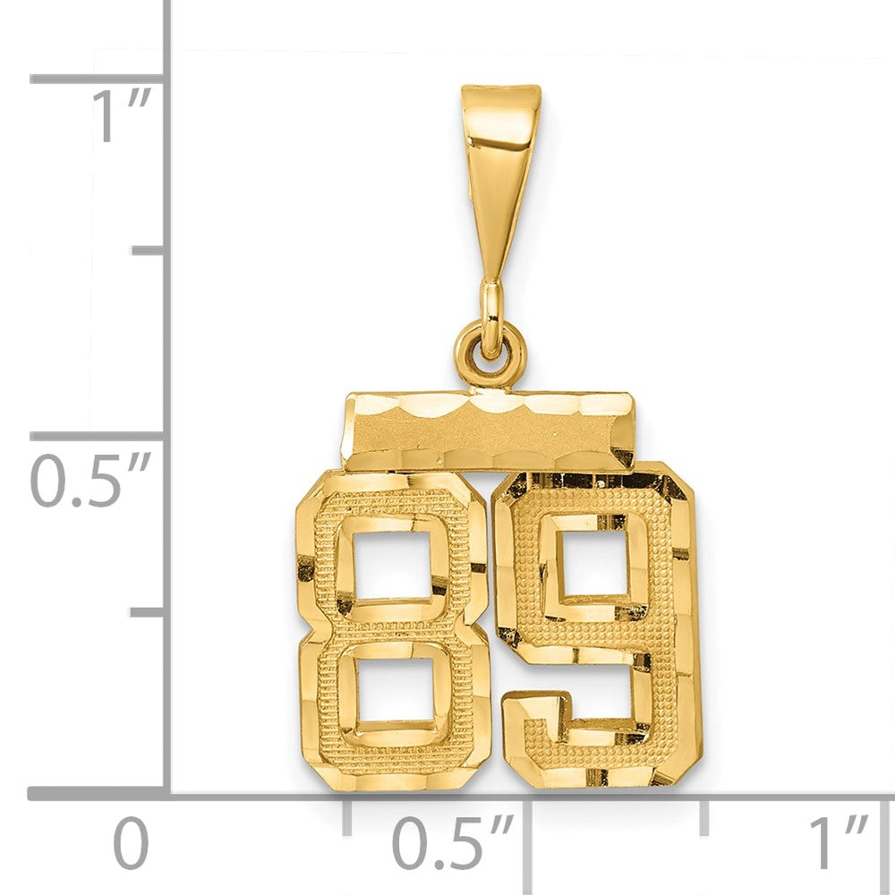14k Yellow Gold Small Brushed Diamond-cut Number 89 Charm