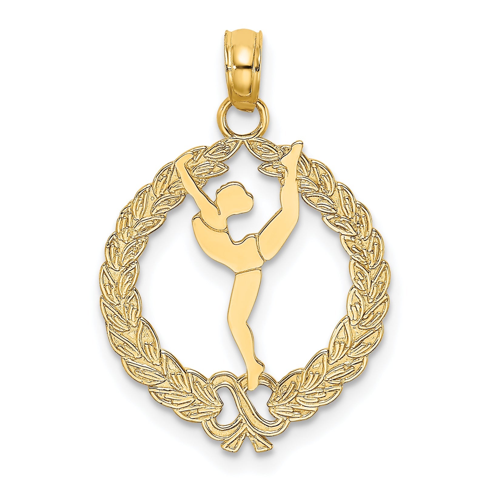 Elevate your elegance with our stunning 14K Yellow Gold Solid Polished Framed Gymnast Charm. Crafted in 14K gold, this charm features a polished finish that gleams with every movement. Measuring 18.8 mm in length and 16.7 mm in width, it showcases intricate detailing, embodied in its solid, textured open-back profile. The charm's bail has a width of 4.5 mm, making it easy to pair with various chains. Perfect for anyone who loves themed jewelry, this 14K Yellow Gold Solid Polished Framed Gymnast Charm adds a touch of grace and sophistication to any outfit.