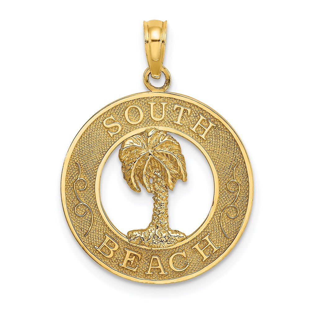 14k Yellow Gold SOUTH BEACH w/Palm Tree Circle Charm