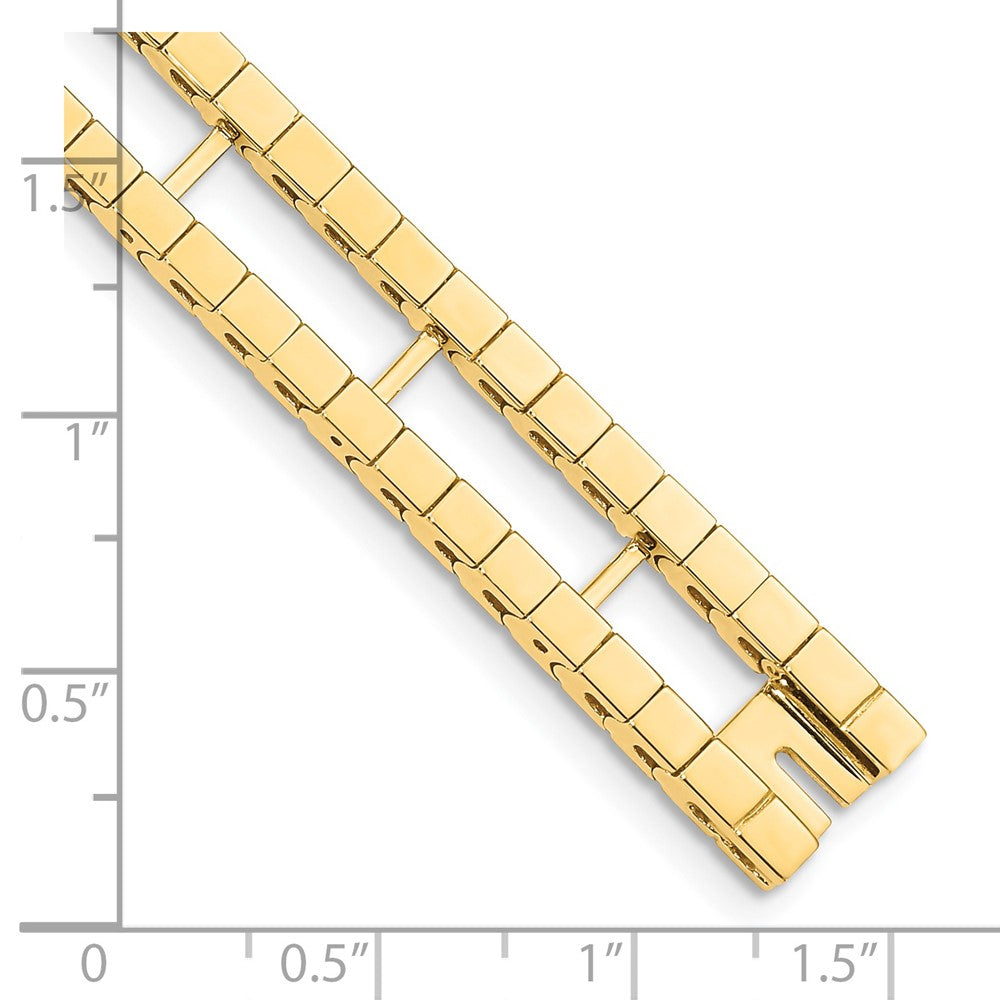 The 14K Yellow Gold Tennis Jacket Blank is designed for the stylish woman who loves to shine. This solid gold bracelet measures 6.5 inches long with a width of 11 mm, offering a sleek, polished look. Made from pure 14K gold, it is cast for durability and quality. The jacket-style design makes it versatile for everyday wear or special occasions. Please note, this is a mount-only piece, so you can add stones or customize it as you like. The 14K Yellow Gold Tennis Jacket Blank truly combines elegance with flexibility, making it a must-have in your jewelry collection.