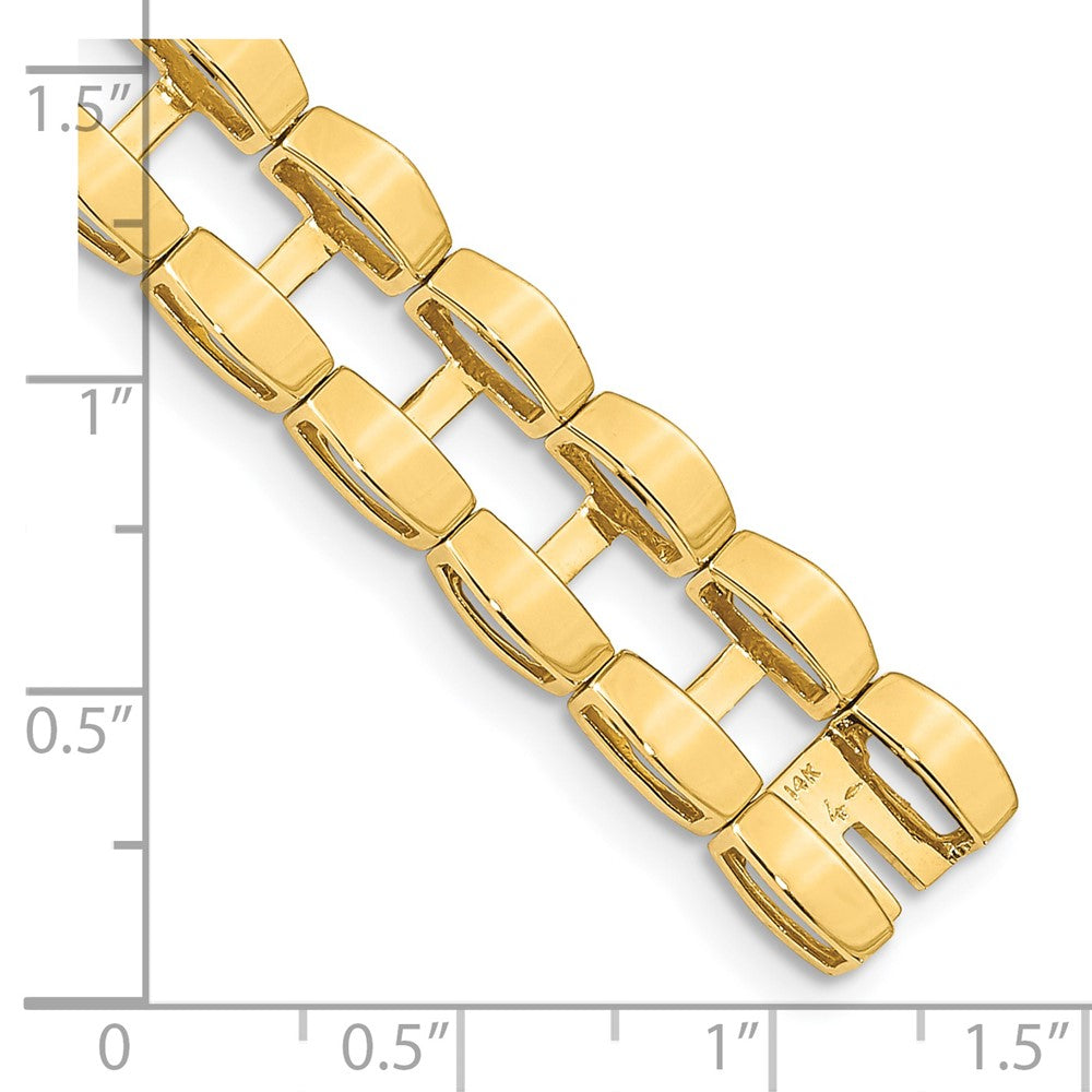Introducing the stunning 14K Yellow Gold Tennis Jacket Bracelet, a perfect piece to add shine to any outfit. Crafted from pure 14K gold, this bracelet features a polished finish that gleams with elegance. With a length of 6.5 inches and an 11mm width, it offers a comfortable fit and bold presence. The solid design is cast for durability, ensuring your jewelry lasts. This women's jewelry piece is a sleek and stylish way to showcase your taste. The 14K Yellow Gold Tennis Jacket Bracelet is a timeless addition to any jewelry collection, perfect for special occasions or everyday wear.