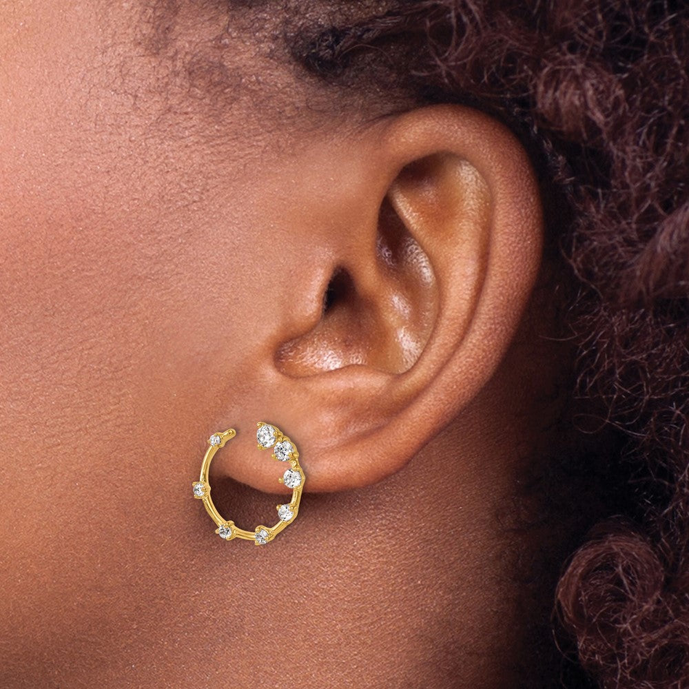 Introducing the 14K Yellow Gold True Origin 5/8 Carat Lab Grown Diamond Vs Def Circular Post Earrings, a perfect blend of elegance and modern style. These earrings feature a full set of sparkling lab-grown diamonds, totaling 0.603 carats, with VS+ clarity and F+ color, ensuring bright, eye-catching shine. Crafted from polished 14K gold, they showcase a solid, durable design. The round-cut diamonds are arranged in a classic post and push-back style, perfect for daily wear or special occasions. Elevate your jewelry game with the timeless allure of the 14K Yellow Gold True Origin 5/8 Carat Lab Grown Diamond Vs Def Circular Post Earrings.