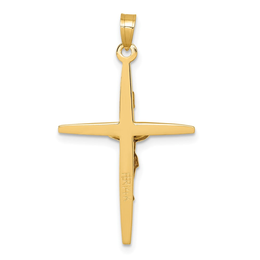 14K Yellow Gold with Rhodium Polished INRI Crucifix Cross Pendant