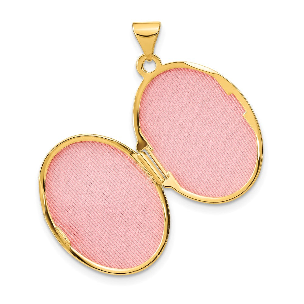 The 14k Yellow & Rhodium Brushed Diamond Star Oval Locket is an exquisite piece that combines elegance and charm. Crafted from 14K gold with stunning rhodium accents, this locket features a polished and brushed finish that catches the eye. It holds a delicate white diamond, weighing 0.005 ct, adding a touch of sparkle. Measuring 21mm in width and 28.1mm in length, it opens to hold two 14x19.4mm oval-shaped photos, making it a personal keepsake. This locket is engravable, enhancing its sentimental value. Elevate your jewelry collection with the 14k Yellow & Rhodium Brushed Diamond Star Oval Locket.