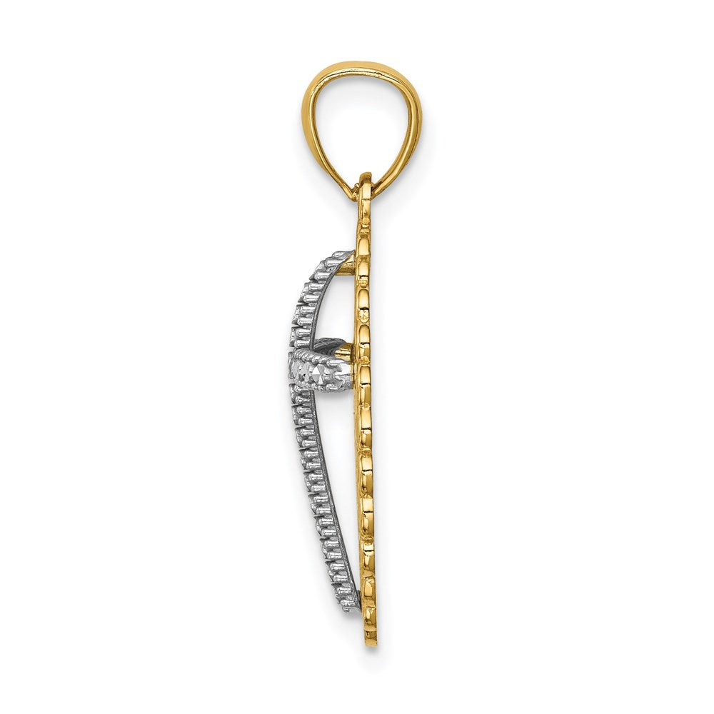14k Yellow & Rhodium Gold w/Rhodium D/C Cross on Heart Background Pendant