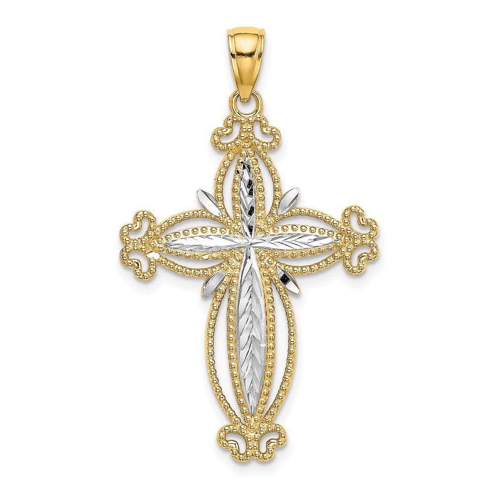14k Yellow u0026 Rhodium Gold W/ Rhodium D/C Puffed Cross Charm