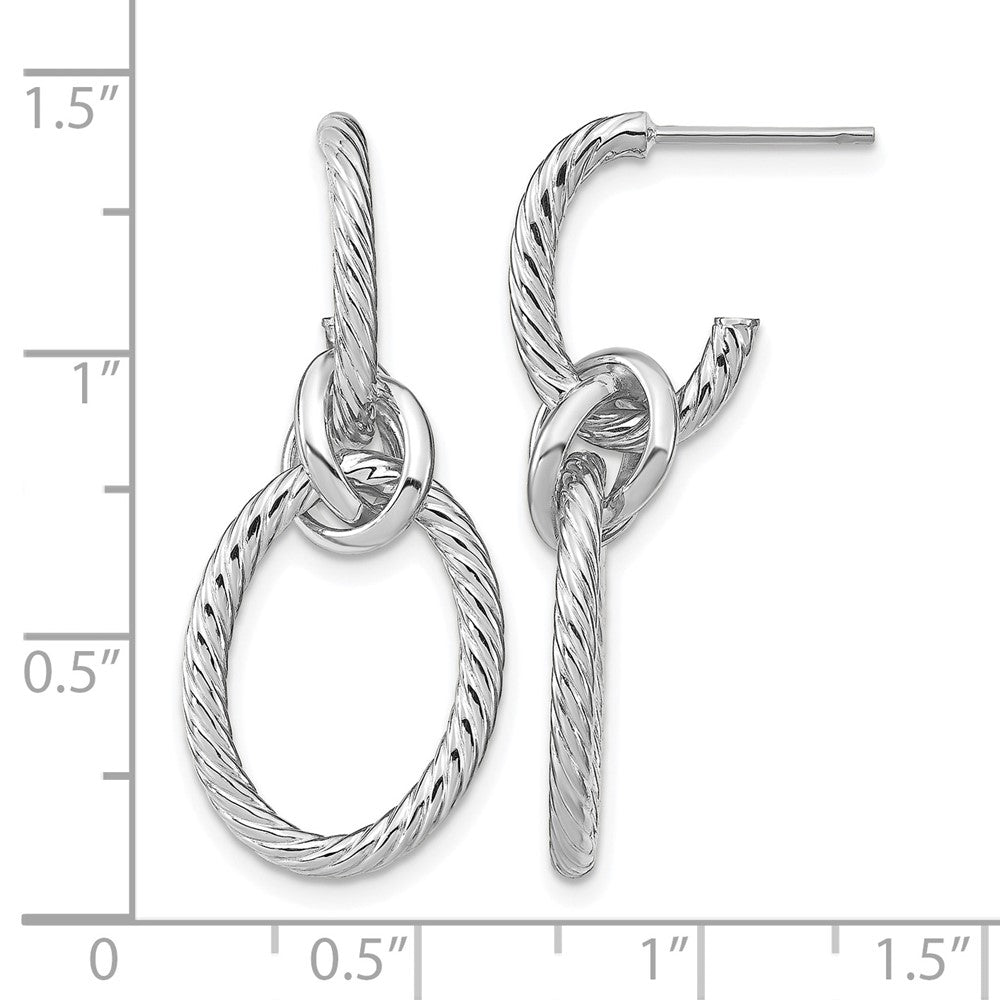 Introducing the 14K Yellow & Rhodium 14K White Plated Polished Textured Post Dangle Earrings. These stylish earrings are made from high-quality 14K gold and feature a bright white rhodium finish. The design boasts a textured surface that adds depth and shine, making them perfect for everyday wear or special occasions. With a length of nearly 32 mm and a width of about 14 mm, these earrings have a bold yet elegant look. The secure post & push back closure keeps them in place all day. The 14K Yellow & Rhodium 14K White Plated Polished Textured Post Dangle Earrings come with a lifetime guarantee, ensuring lasting beauty.