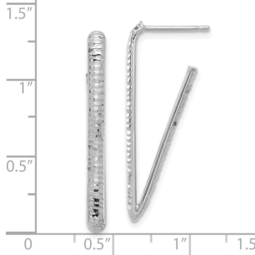 The 14K Yellow & Rhodium W/Wht Rh-Plat Polished/Dia-Cut Triangle J-Hoop Earrings are a stunning addition to any jewelry collection. Crafted from pure 14K gold and coated with a shiny rhodium finish, these earrings feature a sleek diamond-cut design that adds sparkle and shine. Their lightweight build makes them comfortable for all-day wear, and the unique triangle shape sets them apart from typical hoops. Measuring 32.5 mm in length and 12.2 mm wide, these J-hoops are perfect for women who want eye-catching style with ease. The secure post and push-back closure ensure they stay in place. With a lifetime guarantee, the 14K Yellow & Rhodium W/Wht Rh-Plat Polished/Dia-Cut Triangle J-Hoop Earrings deliver both beauty and durability.
