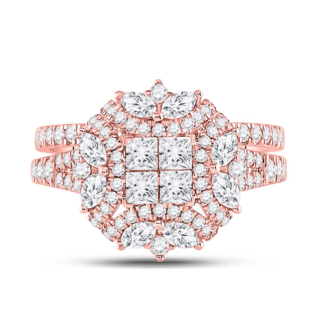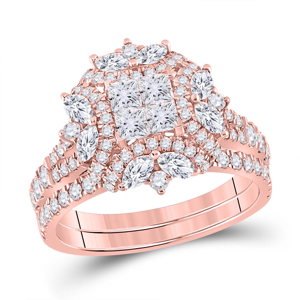 14kt Rose Gold Princess Marquise Diamond Bridal Wedding Ring Set 1-3/4 Cttw