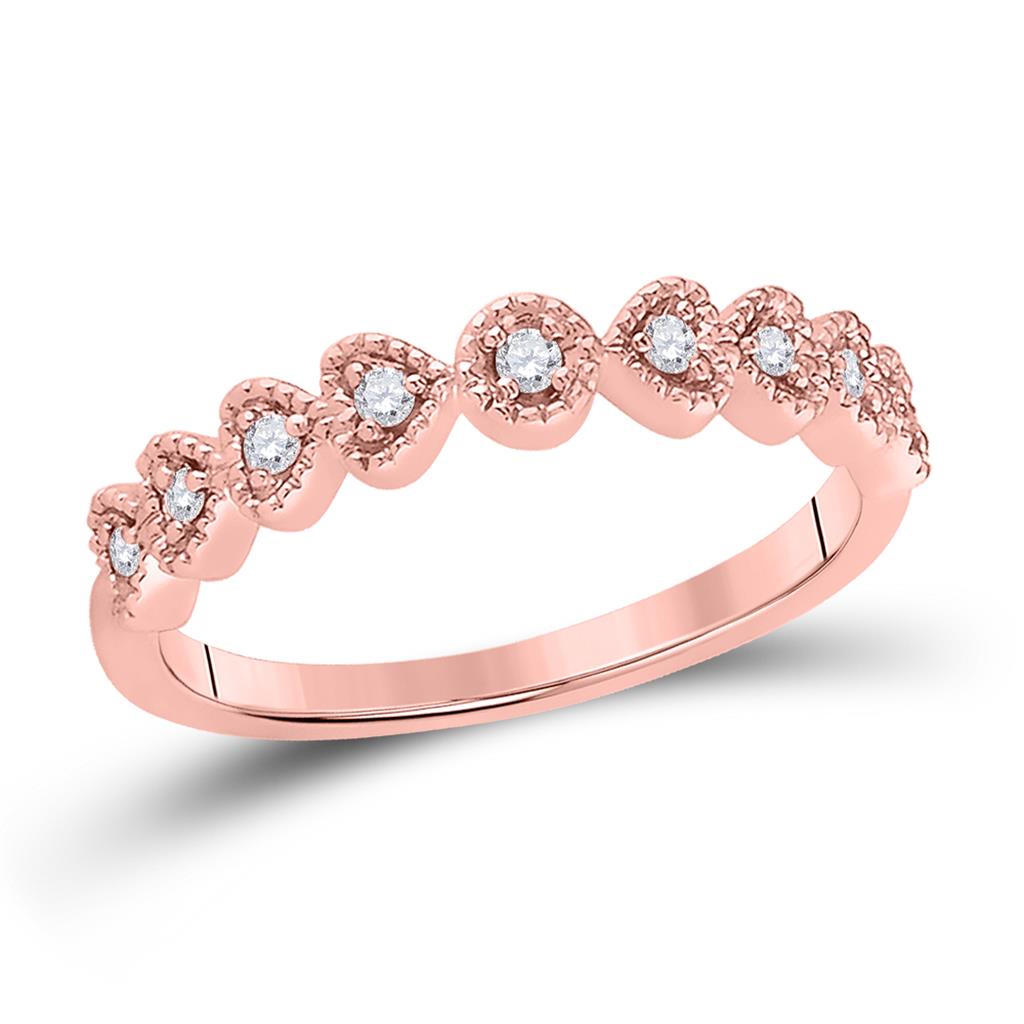 14kt Rose Gold Womens Round Diamond Heart Stackable Band Ring 1/10 Cttw