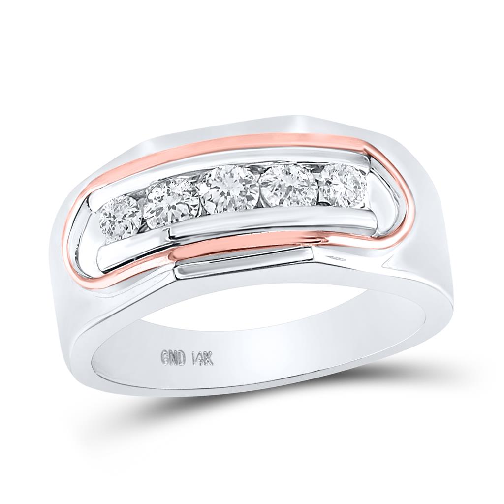 14kt Two-tone Gold Round Diamond Faceted Single Row Band Ring 3/4 Cttw