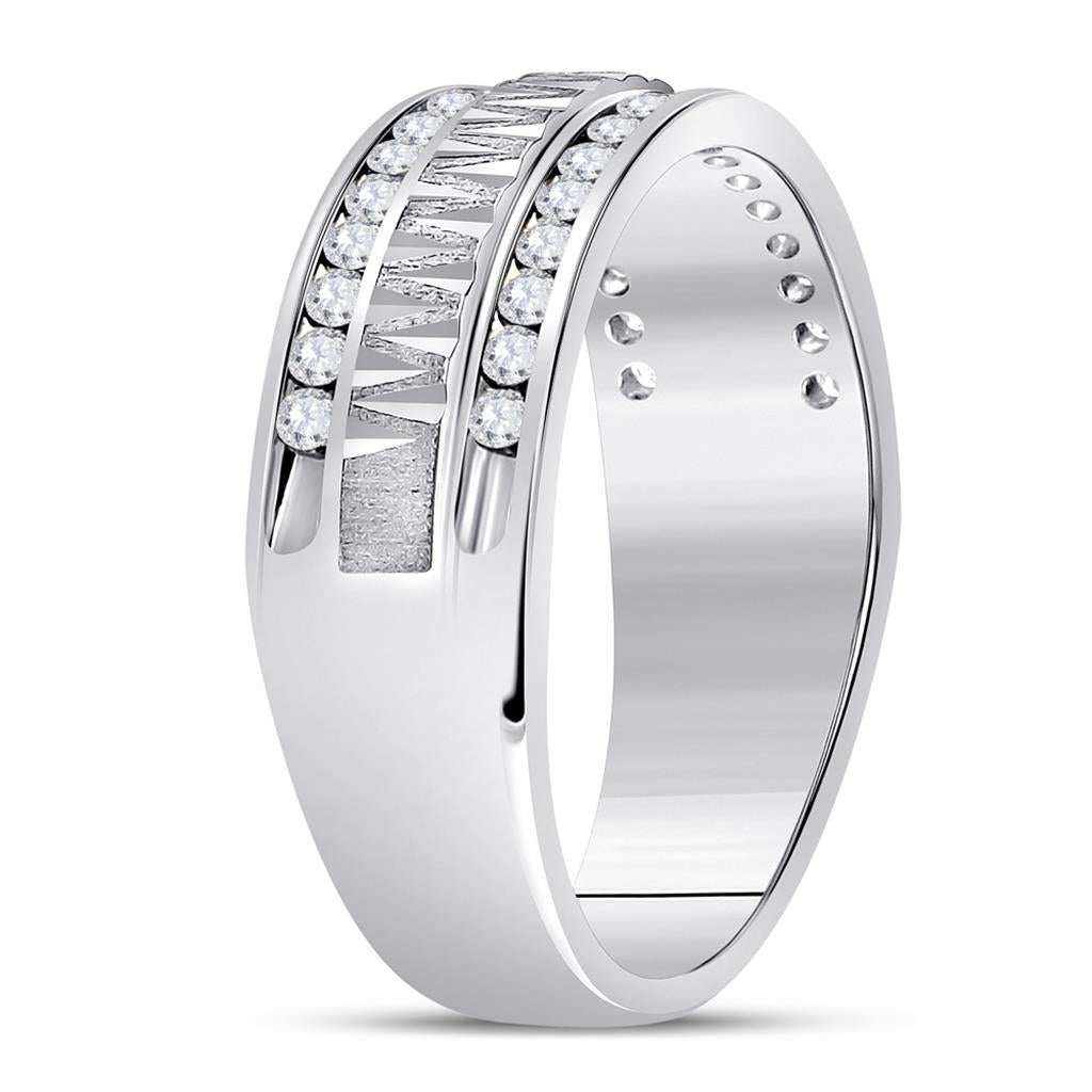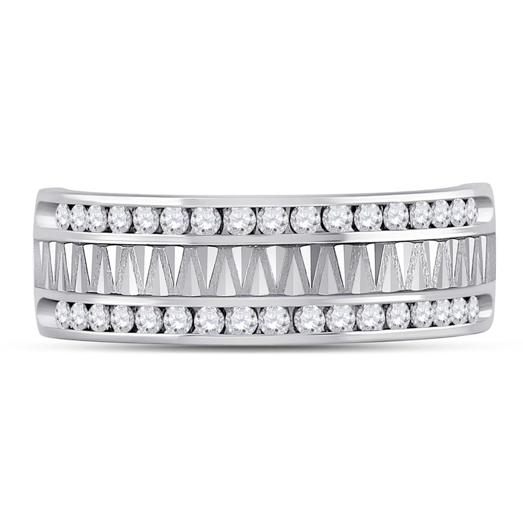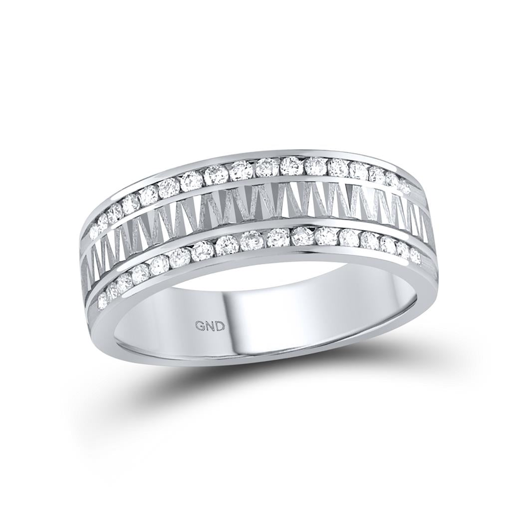 14kt White Gold Round Diamond Double Row Zigzag Wedding Band Ring 1/2 Cttw