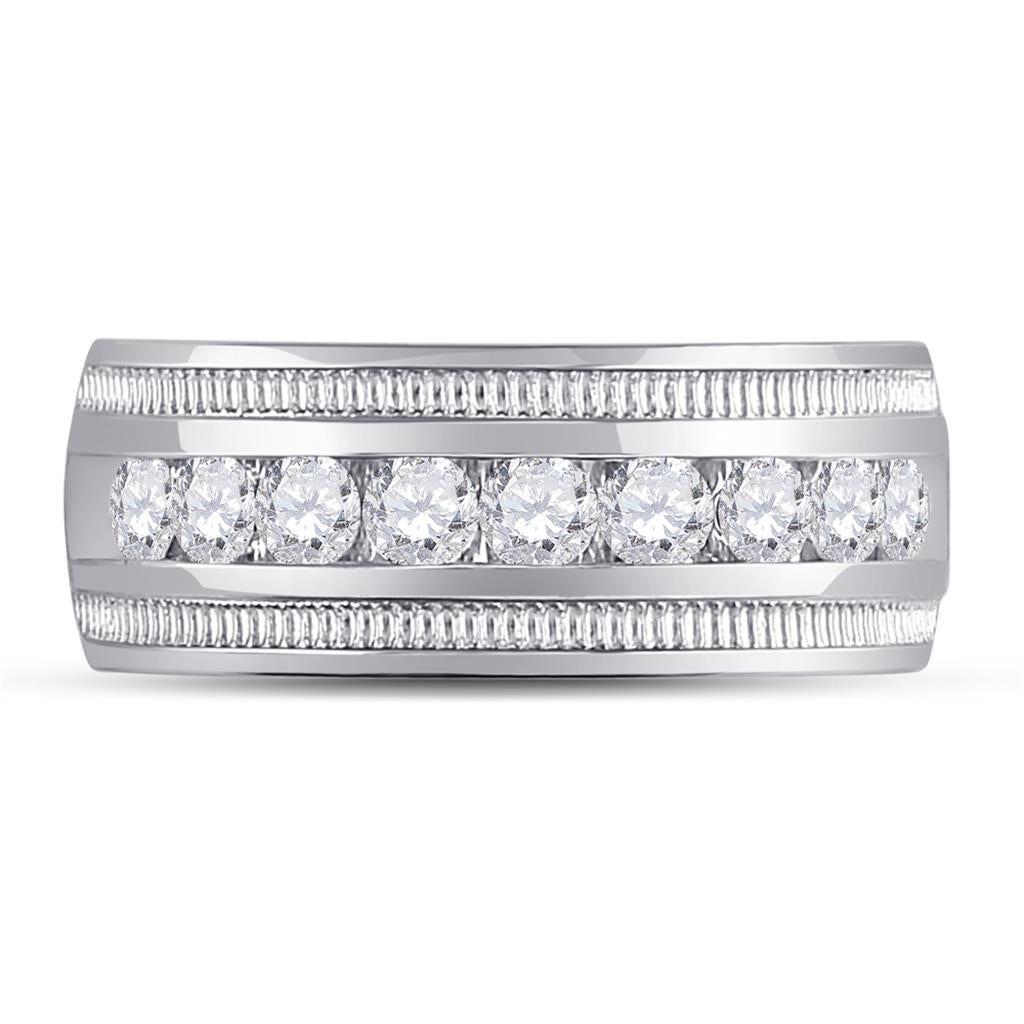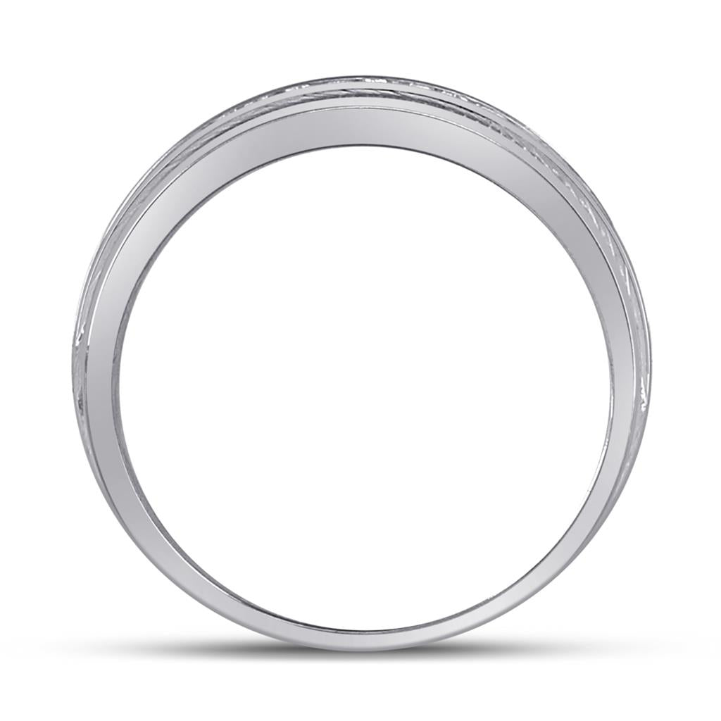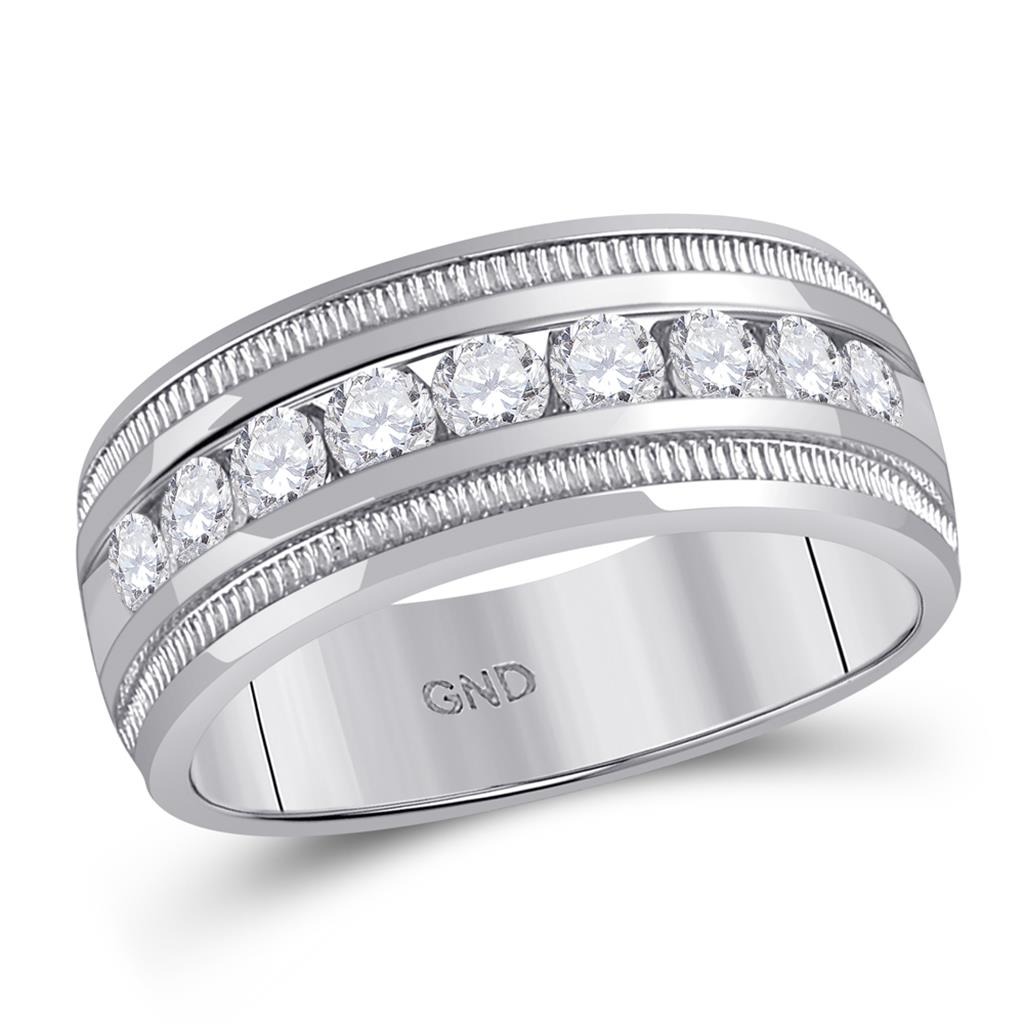 14kt White Gold Round Diamond Single Row Textured Wedding Band Ring 1 Cttw
