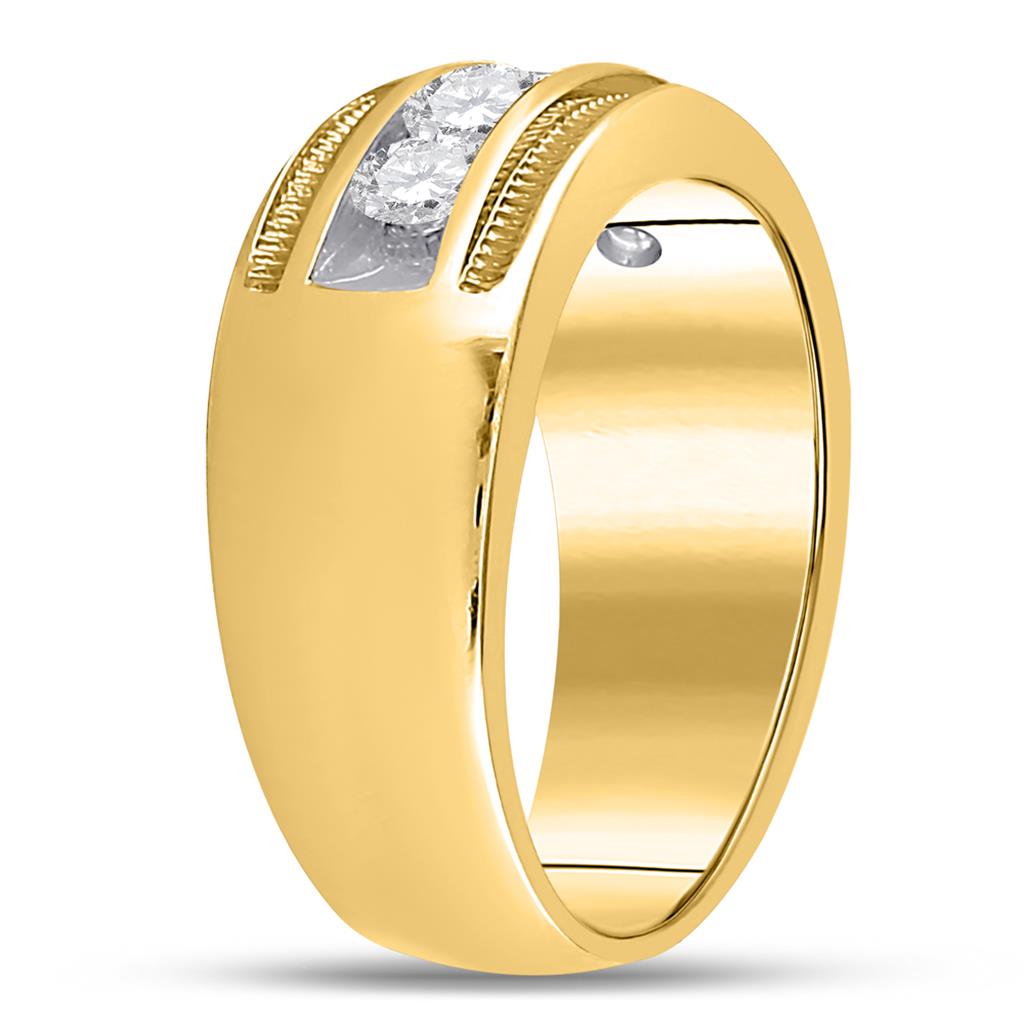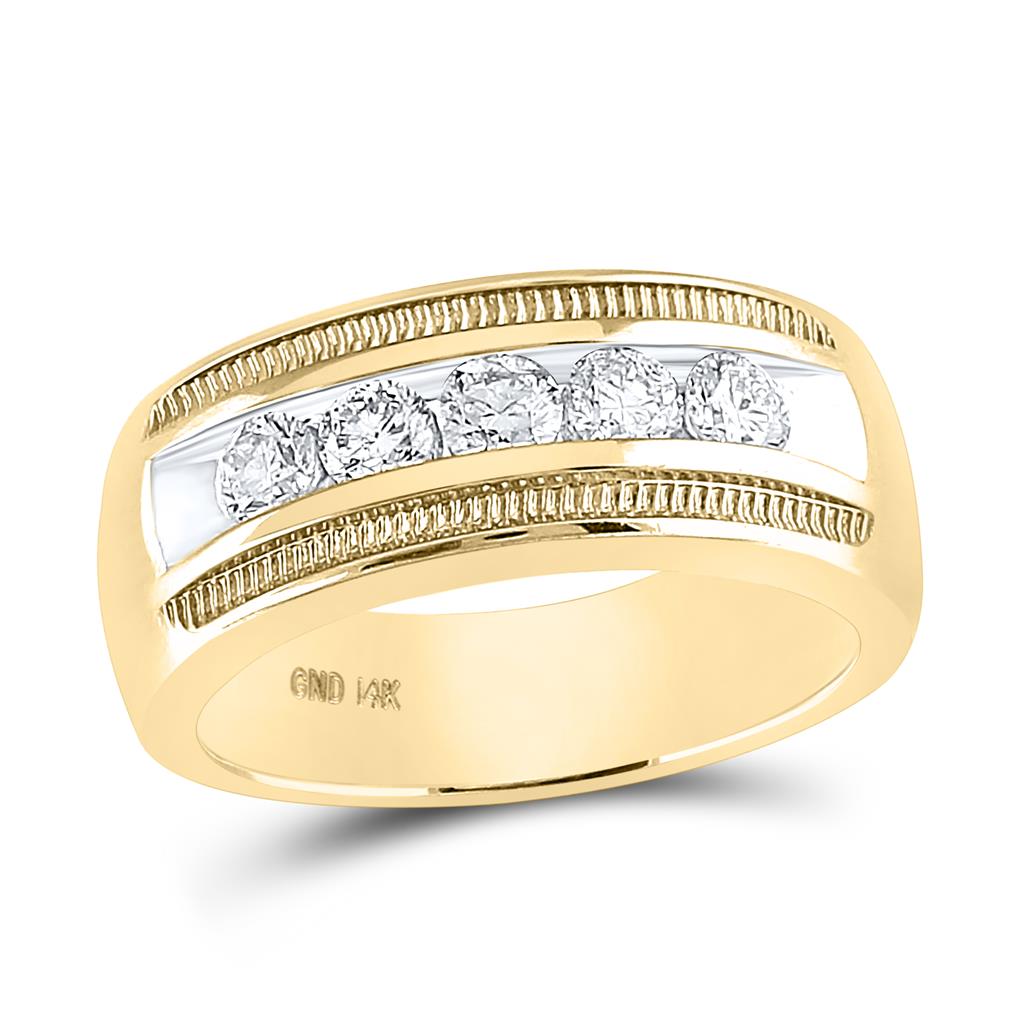 14kt Yellow Gold Round Diamond Single Row Textured Wedding Band Ring 1 Cttw