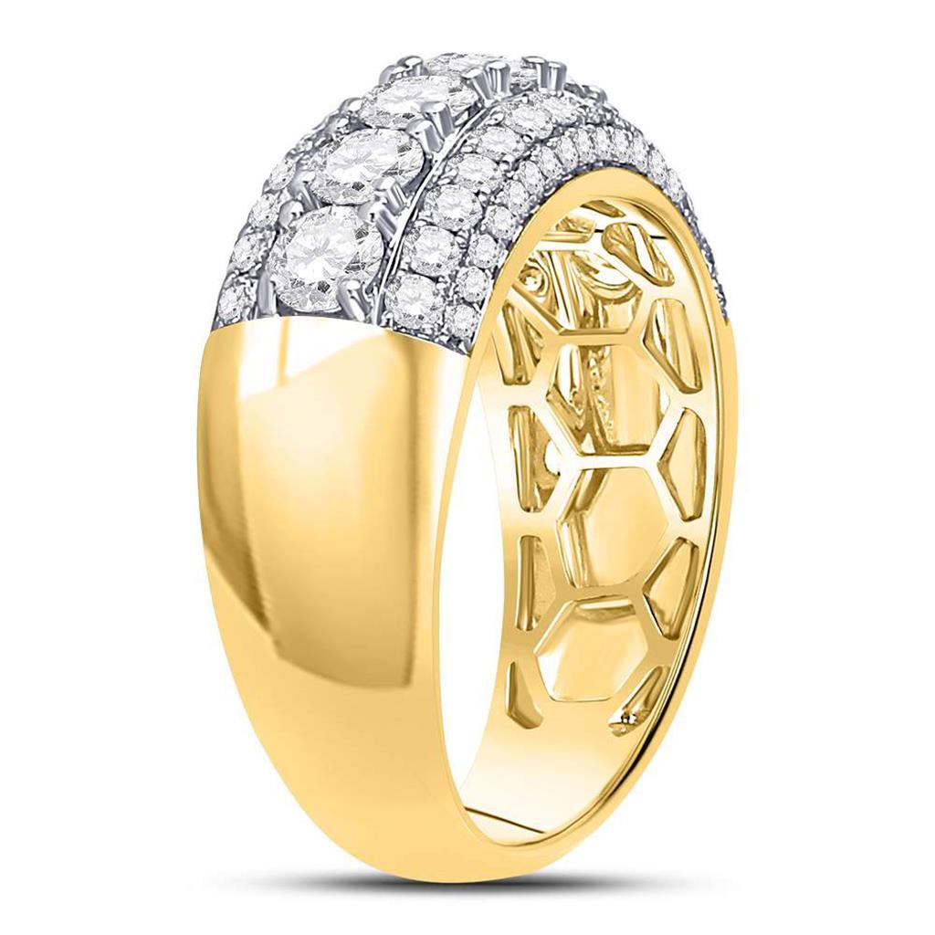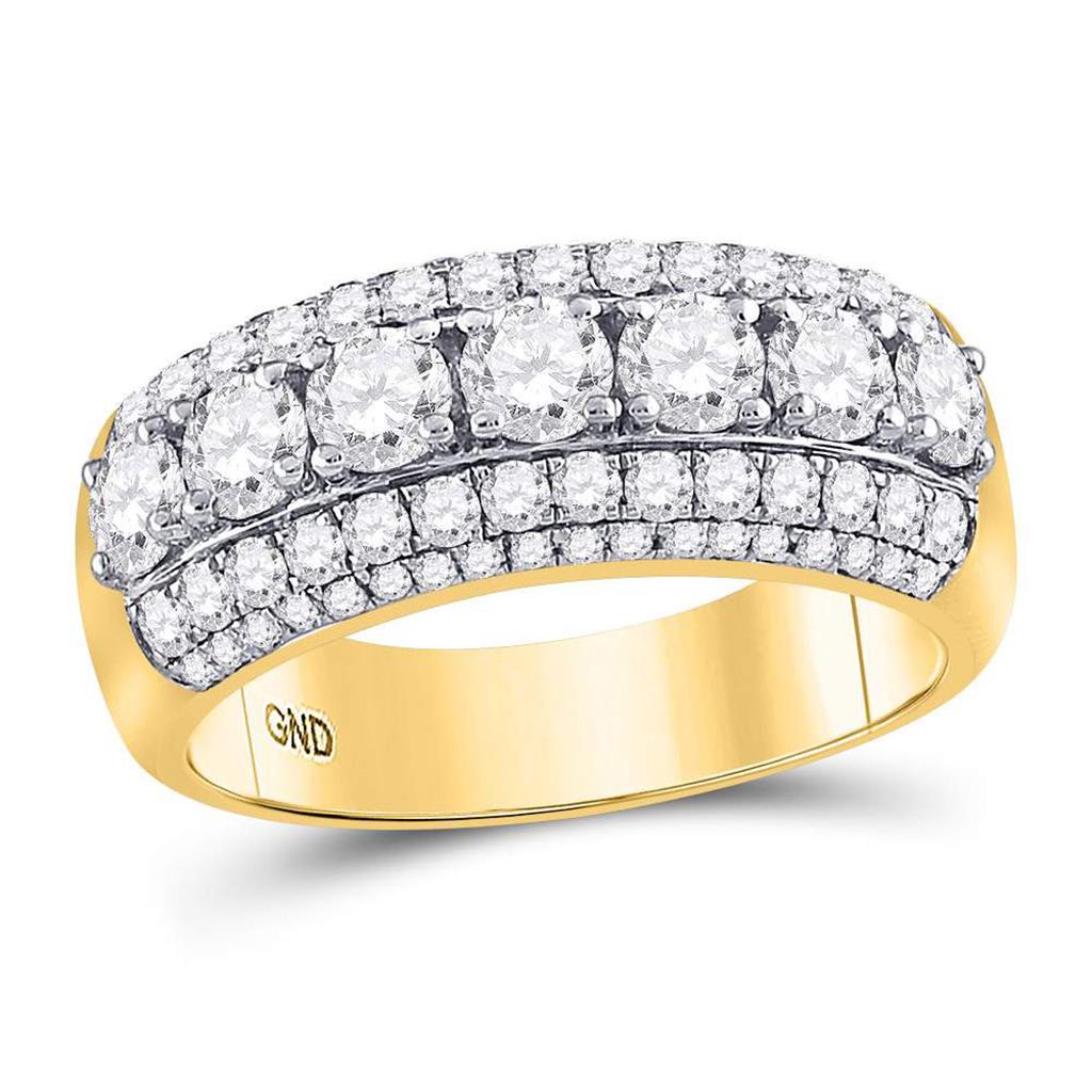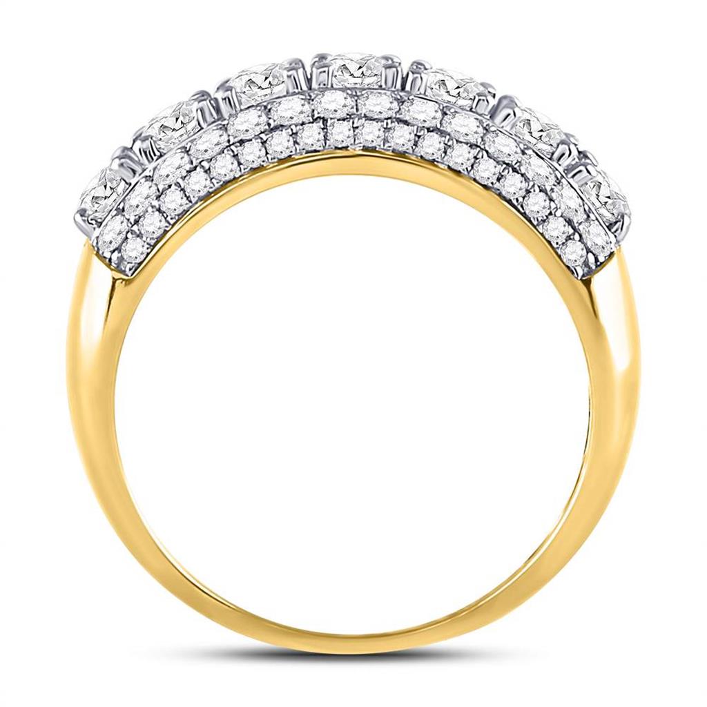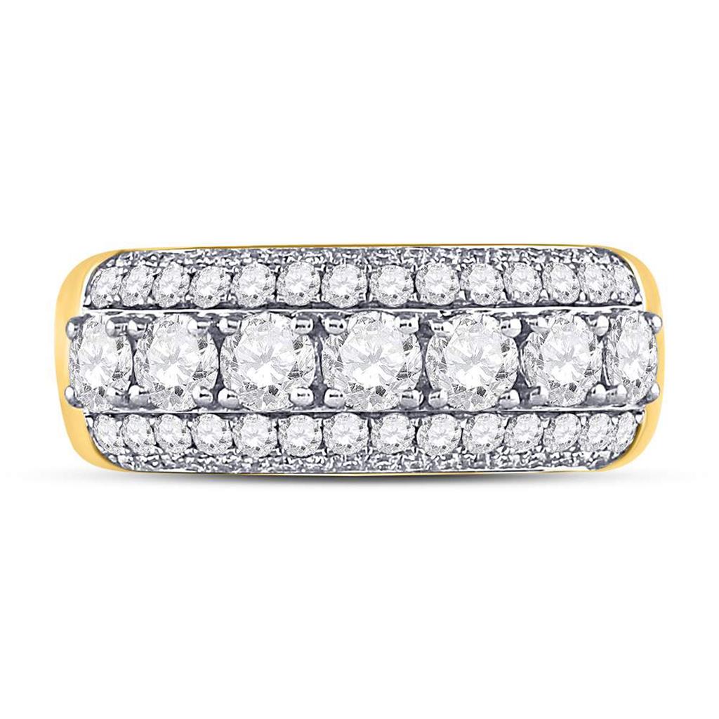 14kt Yellow Gold Round Diamond Triple Row Band Ring 2 Cttw