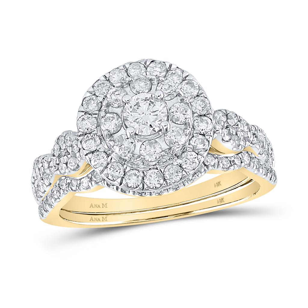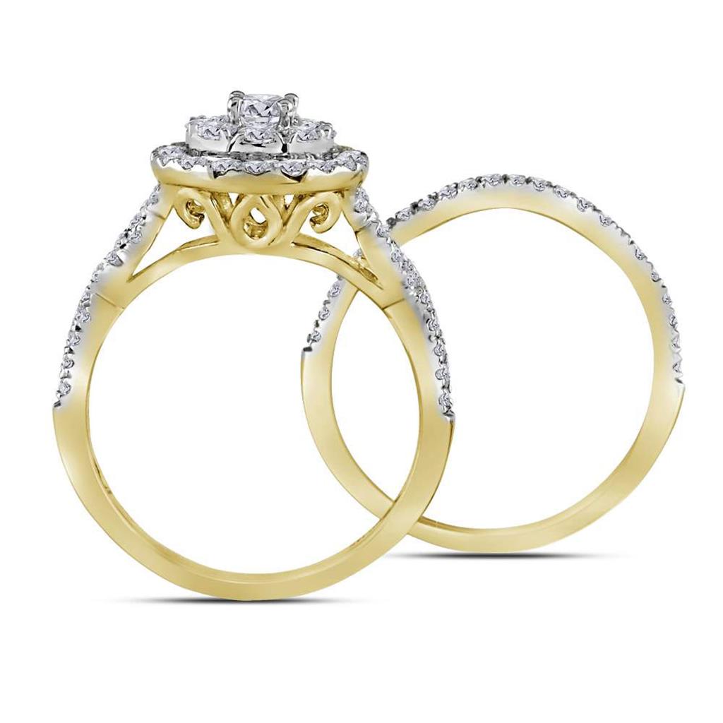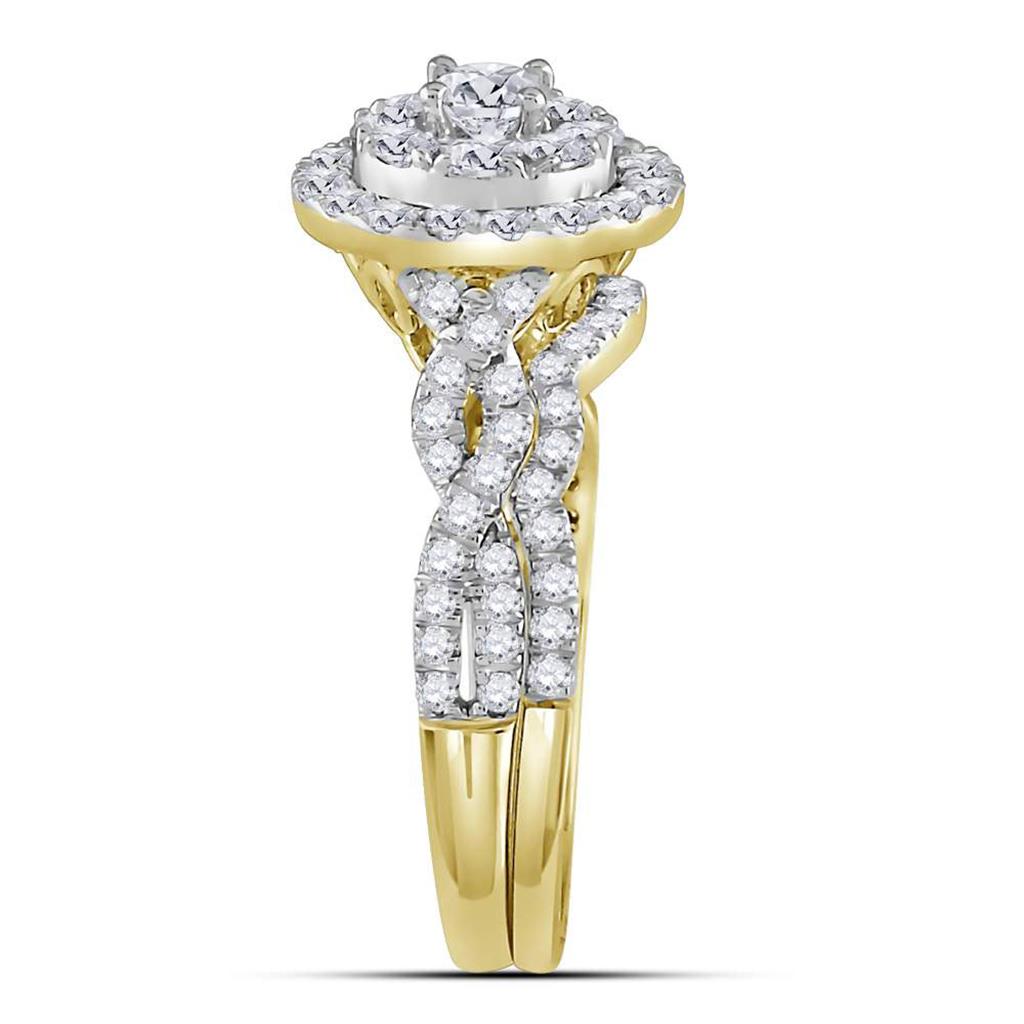 14kt Yellow Gold Round Diamond Twist Bridal Wedding Ring Band Set 1 Cttw