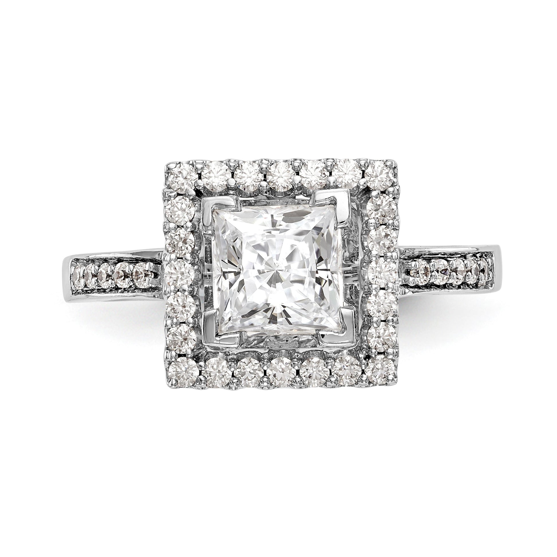14kw Peg Set Diamond Princess CZ Square Halo Engagement Ring