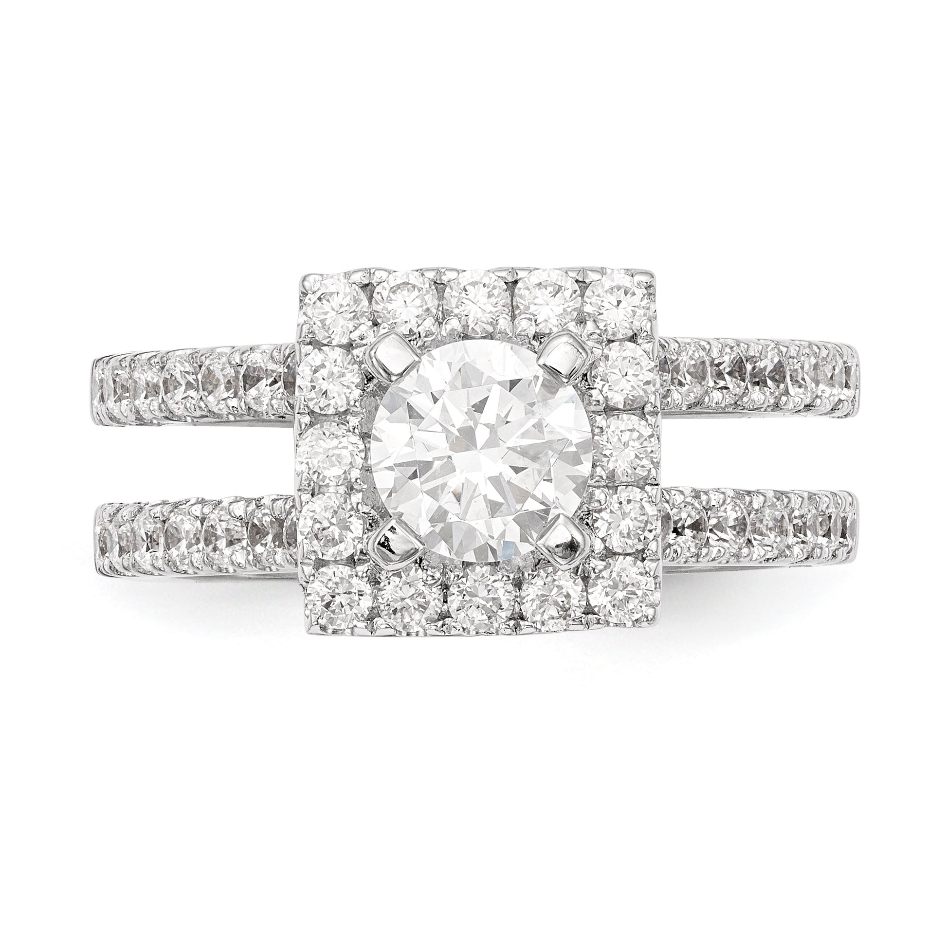 14KW Round Simulated Diamond Square Halo Engagement Ring