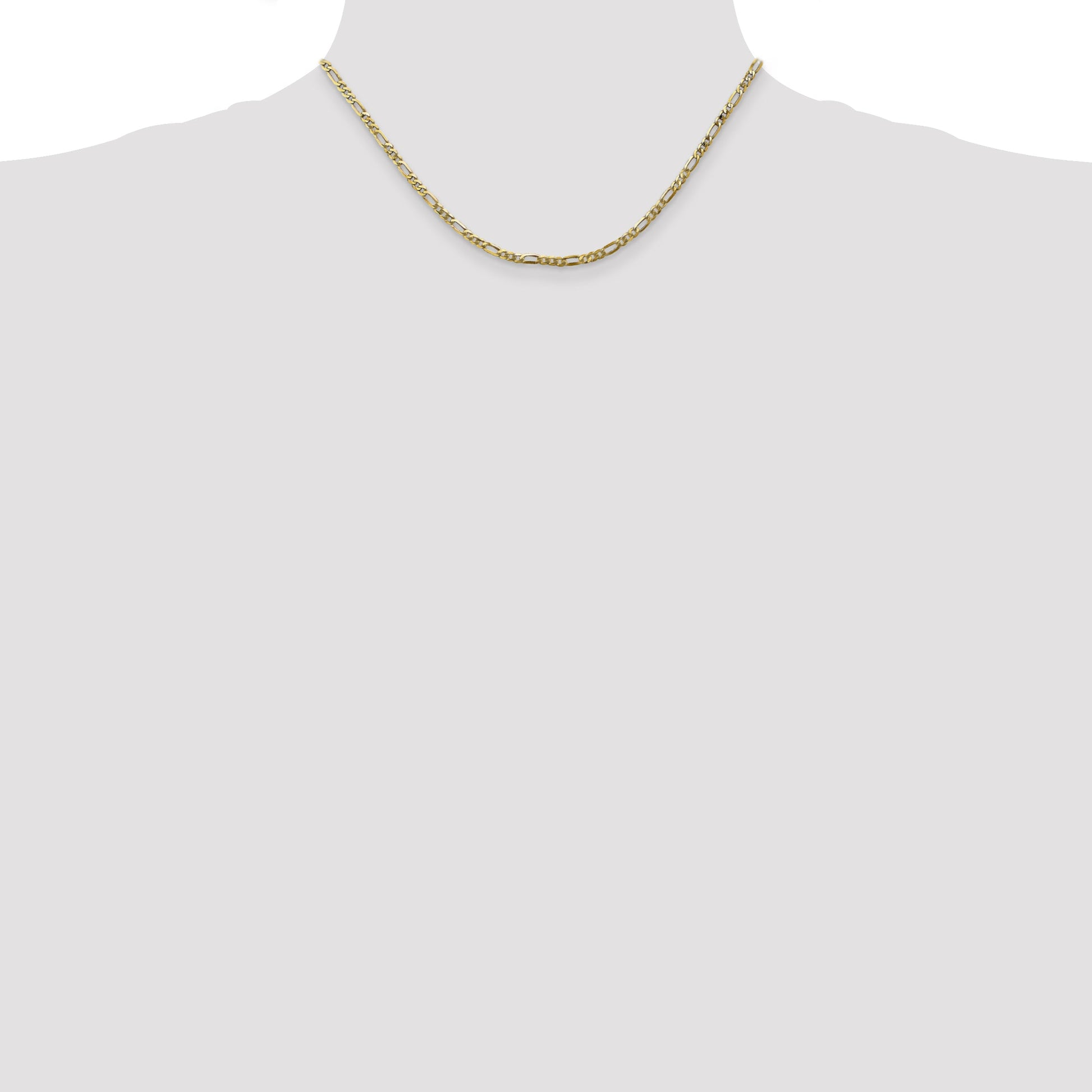 Experience the timeless elegance of our 16 Inch 10K 2.75mm Flat Figaro Chain. This necklace, crafted from 10K yellow gold, boasts a polished finish that shines brilliantly. Measuring 16 inches in length and 2.75mm in width, its flat Figaro design adds a classic touch to any outfit. The solid chain is casted and machine-made for lasting durability, and it secures with a sturdy lobster clasp. Elevate your jewelry collection with the 16 Inch 10K 2.75mm Flat Figaro Chain, a piece that combines quality and style.