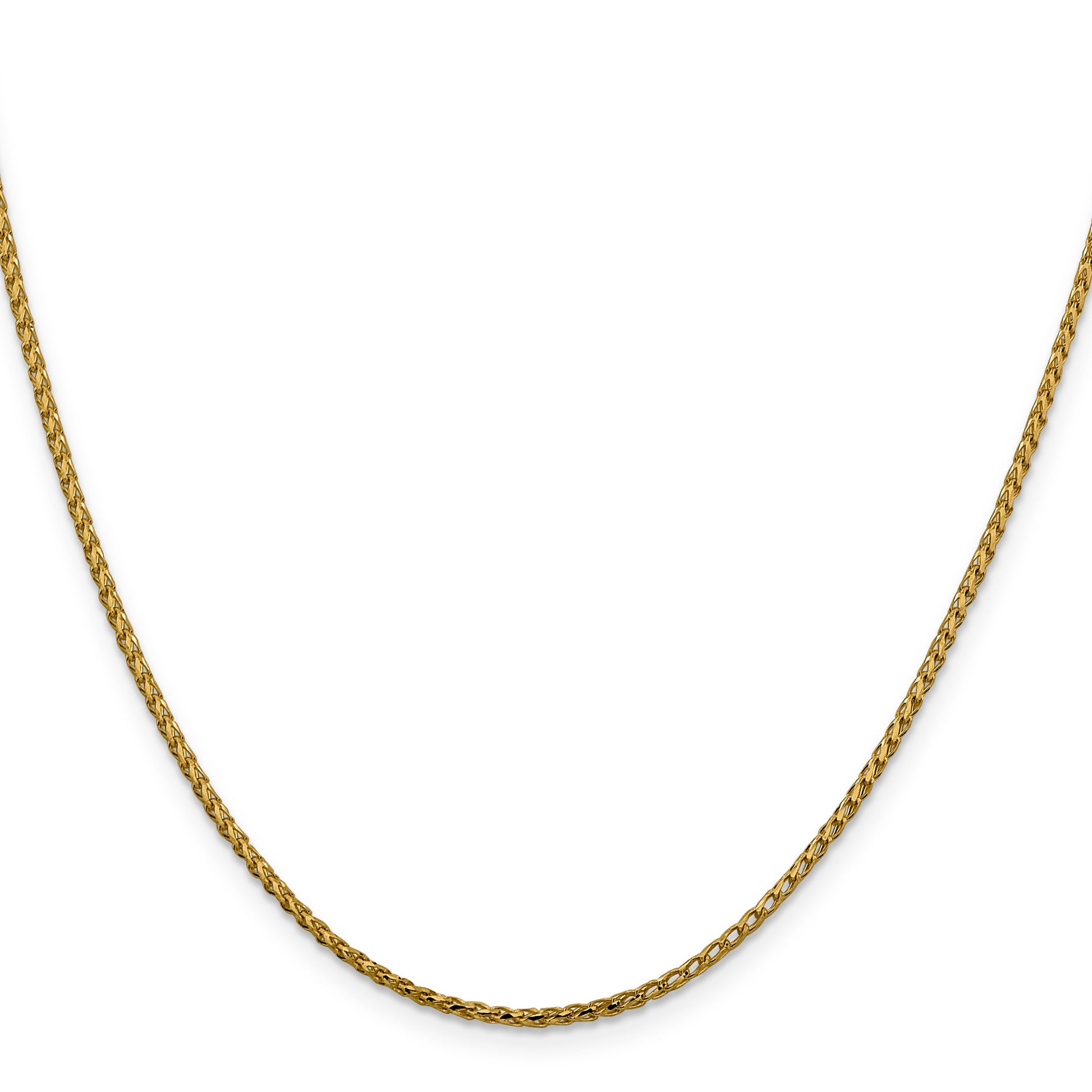 Experience timeless elegance with our 16 Inch 14K 1.6mm Diamond-Cut Open Franco Chain. Crafted from 14K yellow gold, this polished Franco chain offers a sleek, bold look with its 1.6mm width and 1.7mm thickness. The solid, wire-formed design ensures durability, while the fancy lobster clasp provides a secure fit. Perfect for any occasion, this necklace promises a lifetime of shine and sophistication. Elevate your style effortlessly with our 16 Inch 14K 1.6mm Diamond-Cut Open Franco Chain.
