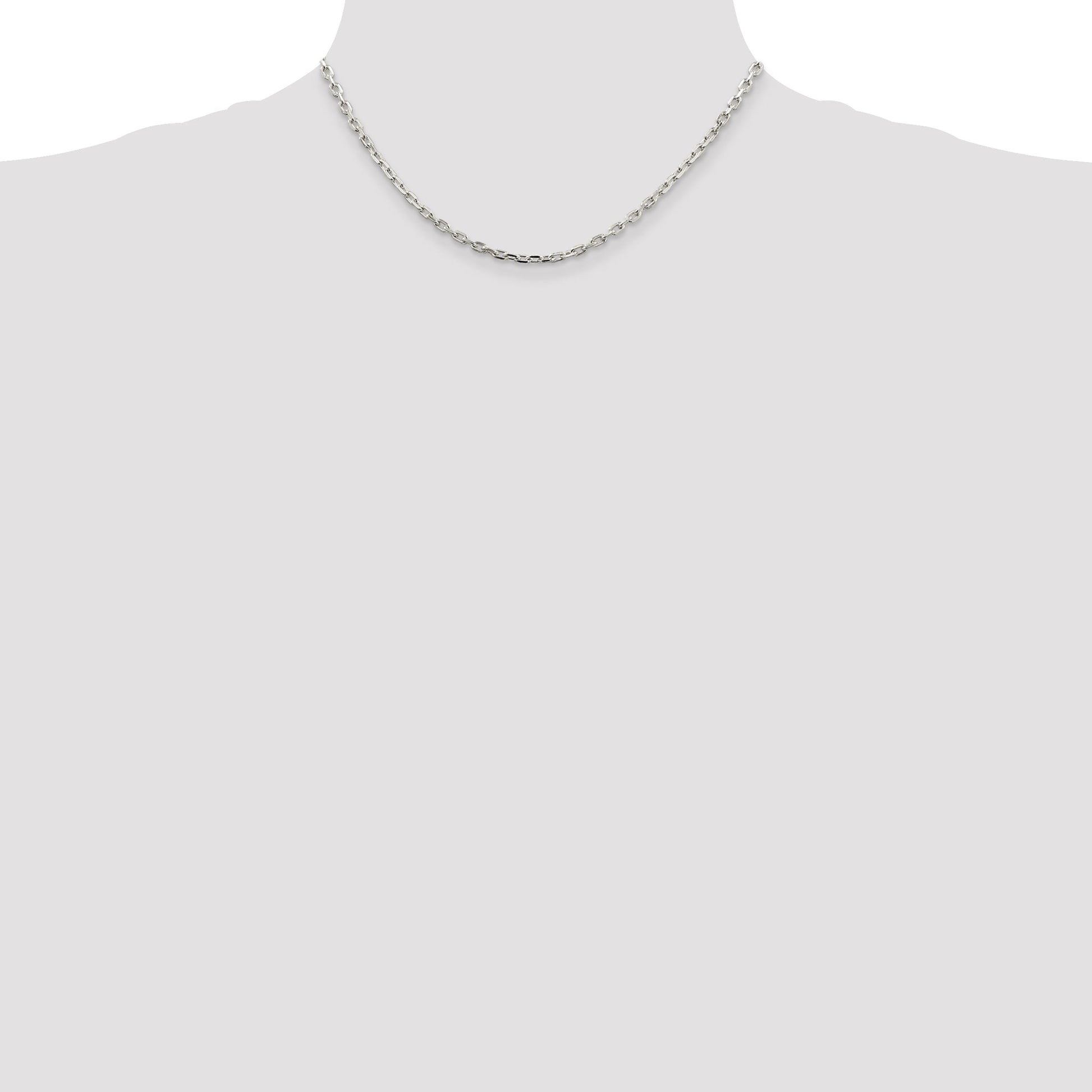 The 16 Inch Sterling Silver 3.25mm Beveled Oval Cable Chain adds a touch of elegance and simplicity to any outfit. Crafted in polished sterling silver, this 16-inch long chain features a distinctive 3.25mm beveled oval design, making it perfect for daily wear or special occasions. Its lobster clasp ensures a secure fit, while the open link style gives durability and a classic appeal. This timeless piece of jewelry comes in an appealing white hue, making it ideal for women who appreciate sophistication. Elevate your style with this 16 Inch Sterling Silver 3.25mm Beveled Oval Cable Chain and turn heads.