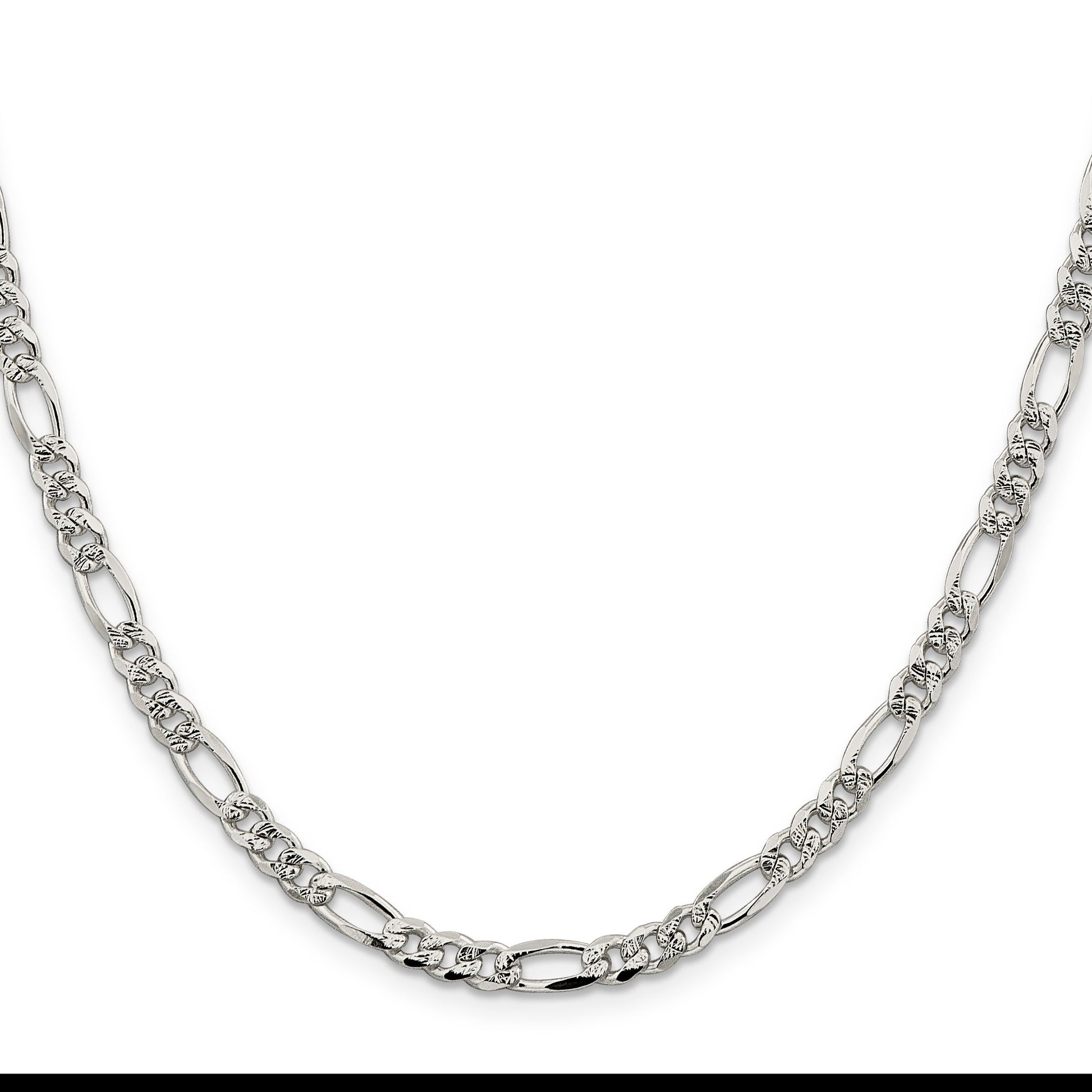 The 16 Inch Sterling Silver 4.3mm Pave Flat Figaro Chain combines elegance with durability. Crafted from 925 sterling silver, this chain boasts a polished, anti-tarnish finish that maintains its shine over time. At 16 inches long and 4.75mm wide, it's designed for a perfect fit and standout style. The classic Figaro chain type and solid construction ensure longevity while the flat pave texture adds a touch of sophistication. A lobster clasp provides secure wear. Elevate your accessory game with this versatile necklace, the 16 Inch Sterling Silver 4.3mm Pave Flat Figaro Chain.