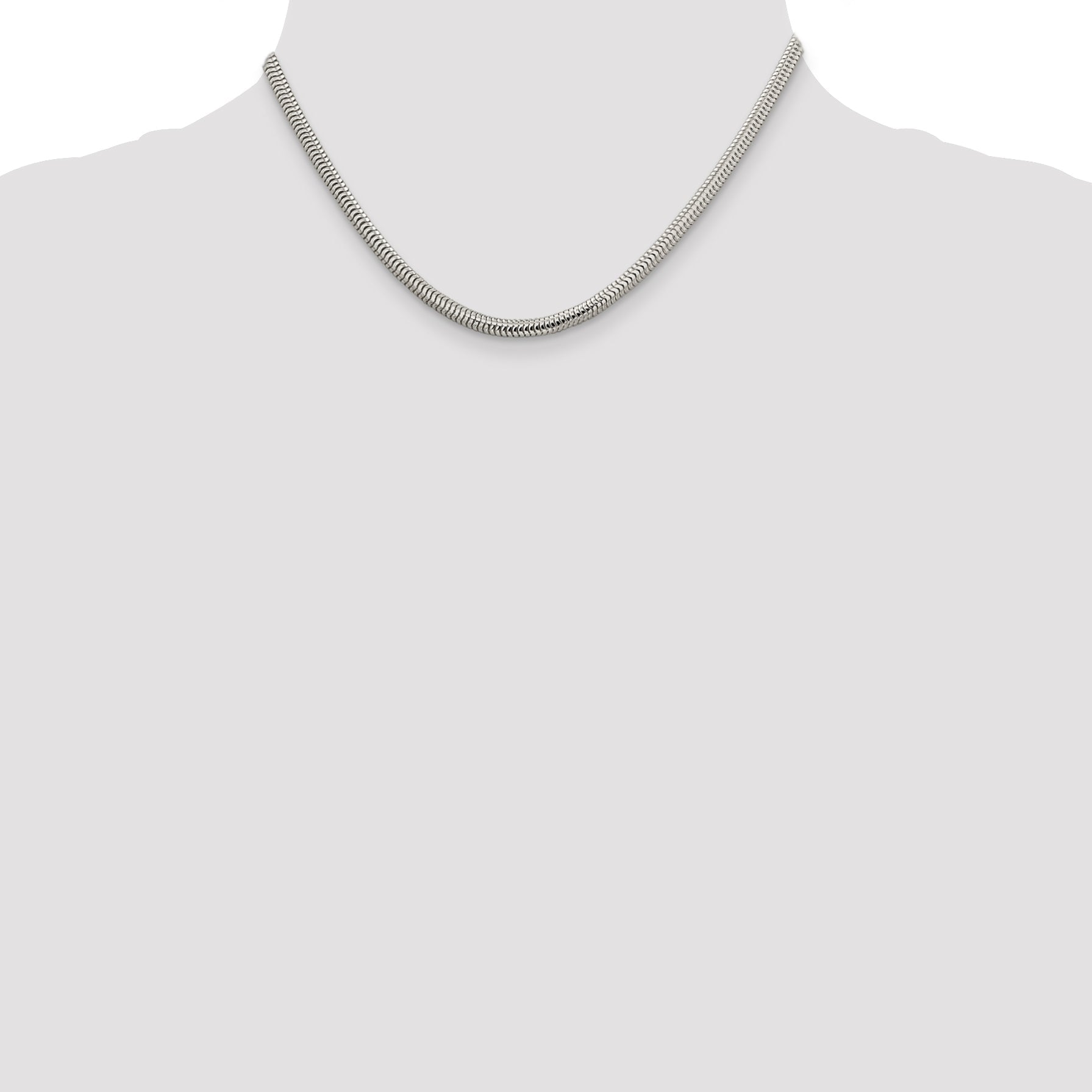 The 16-Inch Sterling Silver 4mm Round Snake Chain is a stunning piece of jewelry every woman will love. Crafted in 925 sterling silver, this chain gleams with a polished finish and sparkles in every light. Its sleek snake design brings a modern twist to a classic accessory you'd wear daily. The chain measures a perfect 16 inches in length and 4mm in width, making it versatile enough to suit any neckline. The anti-tarnish coating ensures this beauty remains forever captivating. A solid lobster clasp provides secure closure, making it durable and easy to wear. Elevate any look with this timeless Sterling Silver 4mm Round Snake Chain and shine in style.