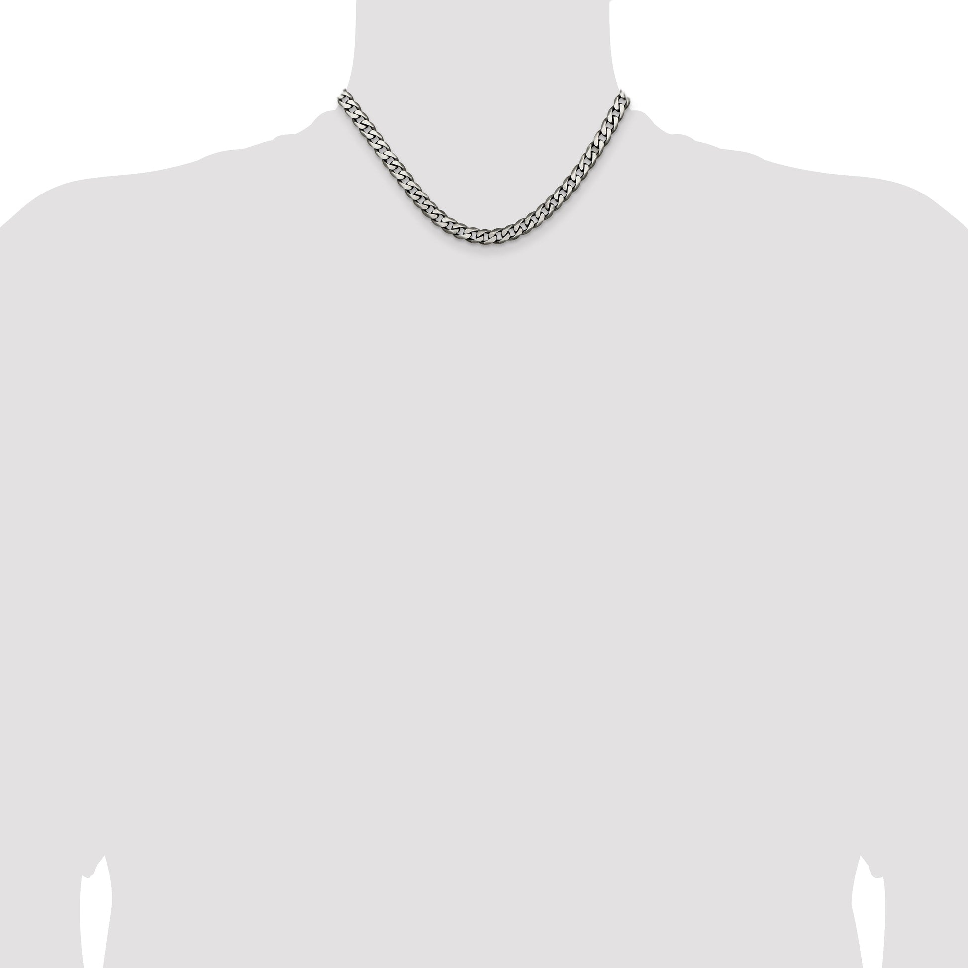 This 16-inch Sterling Silver Antiqued 6.5mm Curb Chain offers style that never fades. Crafted from solid 925 sterling silver, this classic piece shines with its antiqued finish. Its curb chain design provides a broad and striking appearance, measuring a sturdy 7 mm in width. Depend on the lobster clasp, built for everyday wear, for a secure hold. This casted silver chain suits any occasion with its timeless elegance. Add a touch of sophistication with this versatile unisex statement piece. You'll love how the 16-inch Sterling Silver Antiqued 6.5mm Curb Chain elevates your style.