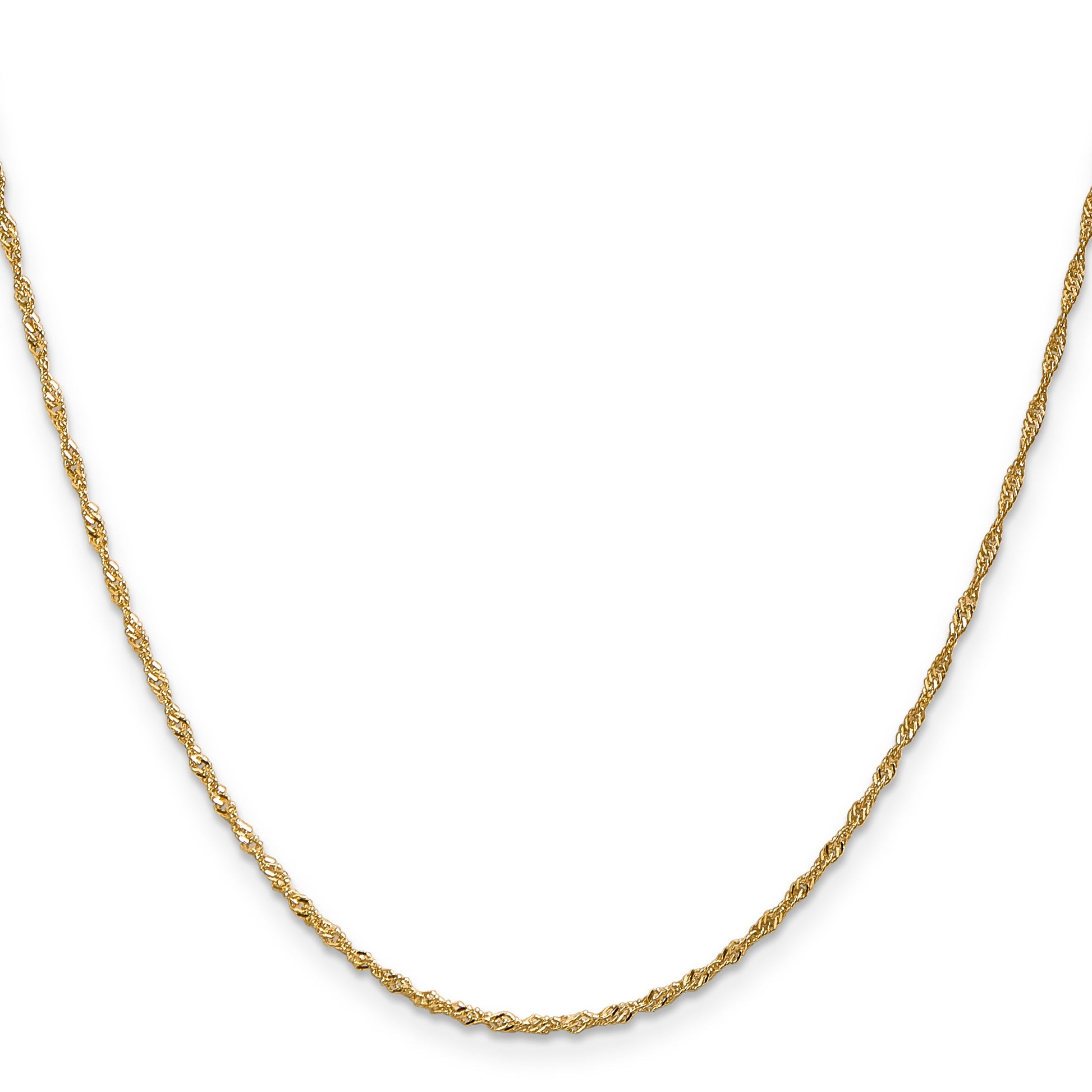 Introducing the timeless elegance of the 18 Inch 10K 1.3 mm Singapore Chain. Crafted from high-quality 10K yellow gold, this polished chain features a stunning Singapore design. At 18 inches, it perfectly complements any neckline. The 1.3 mm width strikes a balance between delicate and durable, while the lobster clasp ensures a secure fit. Nickel-free and machine-made, it also promises lasting wear, covered by a lifetime guarantee. Solidly plated with Rhodium, this unisex necklace shines with refined charm. Embrace sophistication with the 18 Inch 10K 1.3 mm Singapore Chain.
