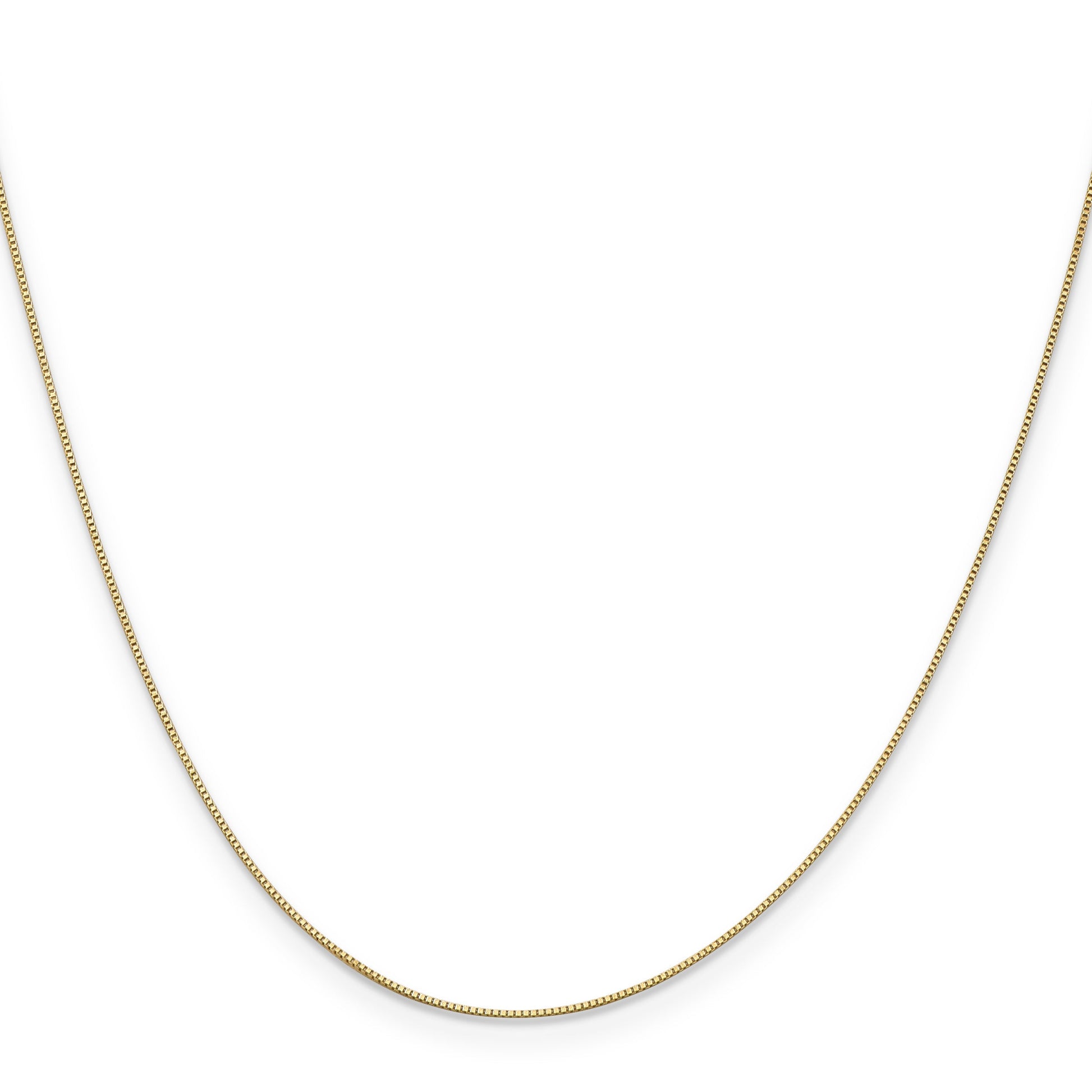 Introducing the elegant 18 Inch 10K .5mm Baby Box Chain, perfect for any occasion. Crafted from polished 10K yellow gold, this fine necklace shines with quality and style. The chain, featuring a solid box design, offers durability while remaining delicate with a width of just 0.5 mm. It secures with a reliable spring ring clasp, ensuring it stays in place. This necklace is nickel-free, making it suitable for sensitive skin. The 18 Inch 10K .5mm Baby Box Chain is a timeless piece, backed by a lifetime guarantee, making it an excellent addition to any jewelry collection.