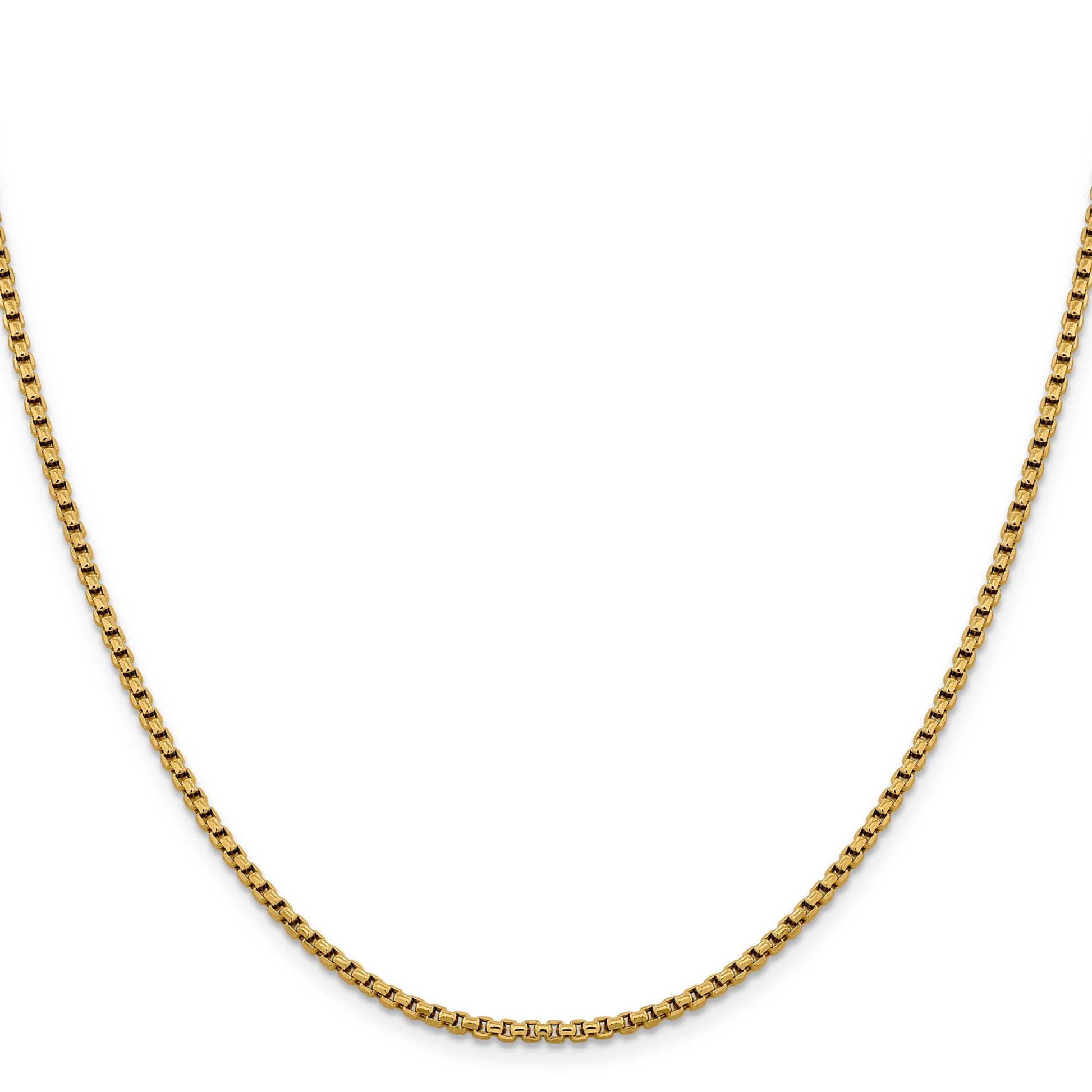 Introducing the stunning 18 Inch 14K 2.4mm Semi-Solid D/C Round Box Chain, a perfect blend of elegance and durability. Expertly crafted from polished 14K yellow gold, this chain gleams with style and sophistication. The diamond-cut texture adds a touch of brilliance, making it a standout piece for any occasion. Featuring a secure lobster clasp and a nickel-free finish, this 18-inch box chain is both safe and stylish. Embrace the timeless beauty of the 18 Inch 14K 2.4mm Semi-Solid D/C Round Box Chain, a must-have addition to your jewelry collection.