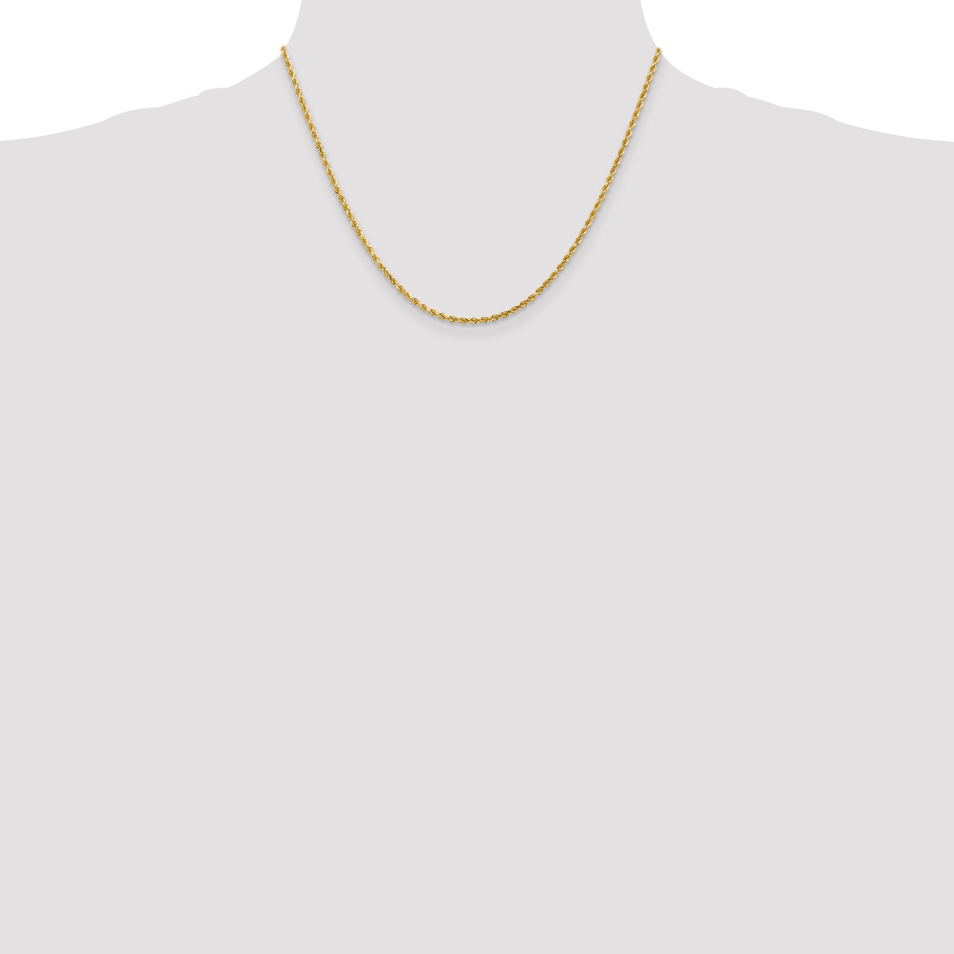 The 18 Inch 14K 2mm Diamond-Cut Rope Chain shines with classic elegance. Crafted from pure 14K yellow gold, this 18-inch chain features a polished, diamond-cut texture that catches light beautifully. The chain’s 2mm width offers both durability and finesse, making it perfect for any occasion. A lobster clasp ensures secure wear while the solid construction promises lasting quality. Ideal for layering or wearing solo, this timeless 14K rope chain piece will elevate your jewelry collection.