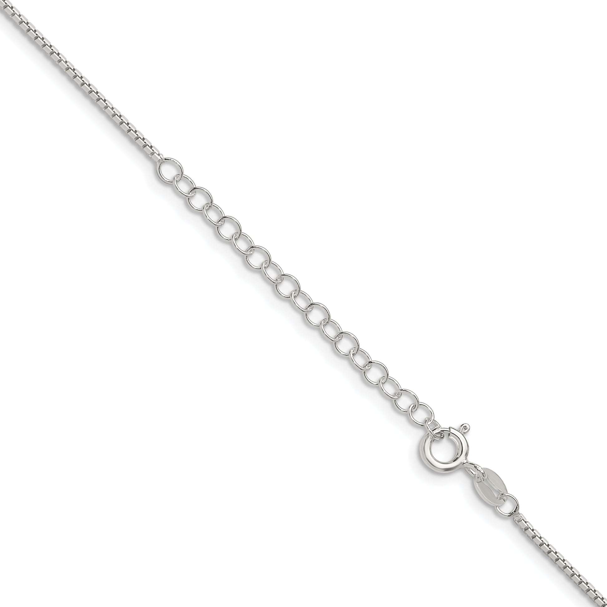 The 18-Inch Sterling Silver 1.25mm 8-Sided Diamond-Cut Box Chain with 2-Inch Extender is a timeless piece of elegance. Crafted from polished 925 sterling silver, this women's necklace shines with its diamond-cut texture. The solid box chain offers durability with a delicate and sleek 1.25mm width. An included 2-inch extender adds versatility to suit your style. The secure spring ring clasp ensures peace of mind. Its sparkling white finish complements any outfit, making it perfect for daily wear or special occasions. The 18-Inch Sterling Silver 8-Sided Diamond-Cut Box Chain wows with its radiant simplicity.