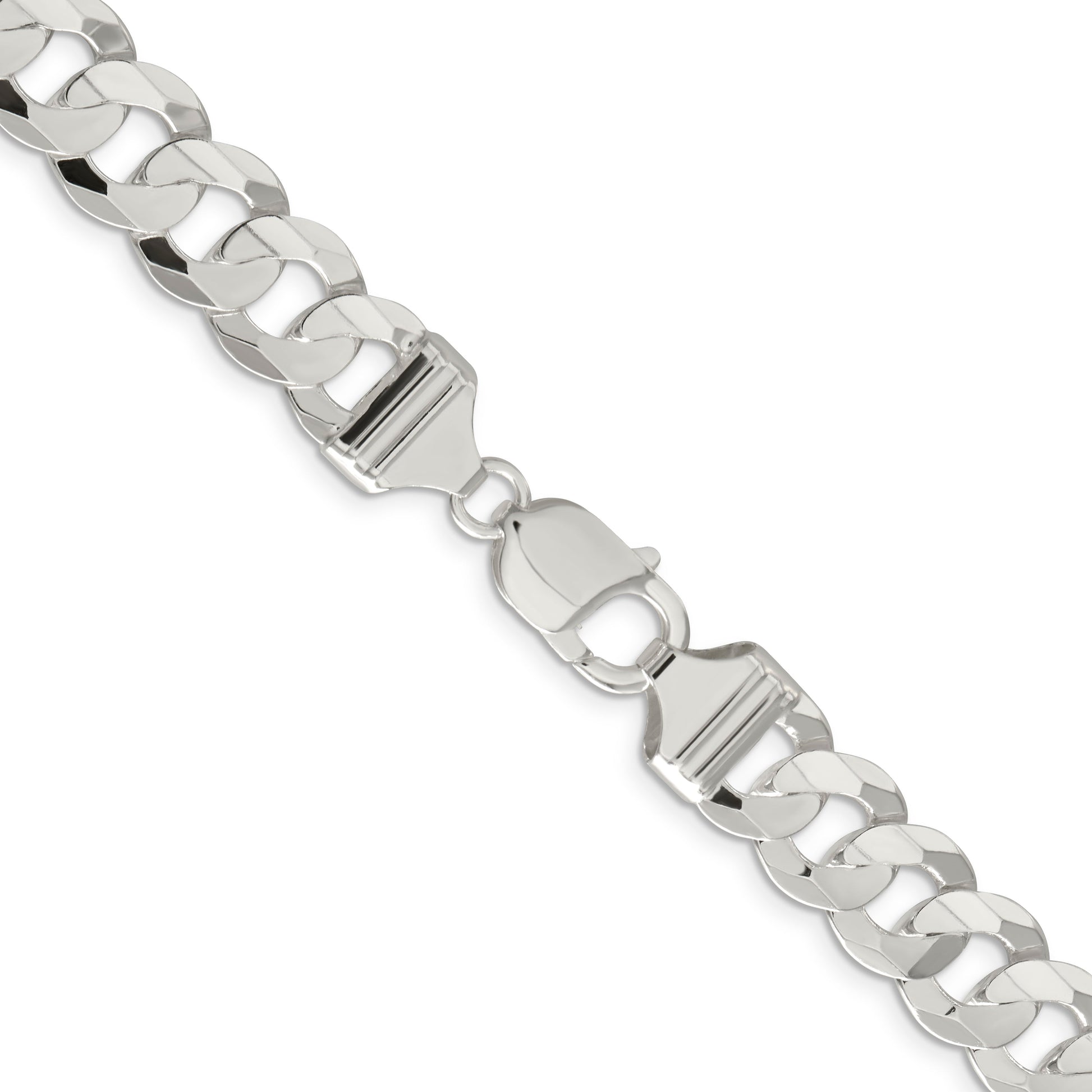 The 18 Inch Sterling Silver 11.9mm Concave Beveled Curb Chain is a standout piece of fine jewelry. Crafted from 925 sterling silver, this chain boasts a sleek, polished finish that gleams in any light. Its robust 11.9mm width provides a bold presence, perfect for any man seeking to make a statement. The concave, beveled edge adds depth and texture, making it a unique addition to any collection. The chain comes with a secure lobster clasp, ensuring it stays in place. Anti-tarnish coating keeps the piece looking new. Add the 18 Inch Sterling Silver 11.9mm Concave Beveled Curb Chain to your lineup and elevate any look.