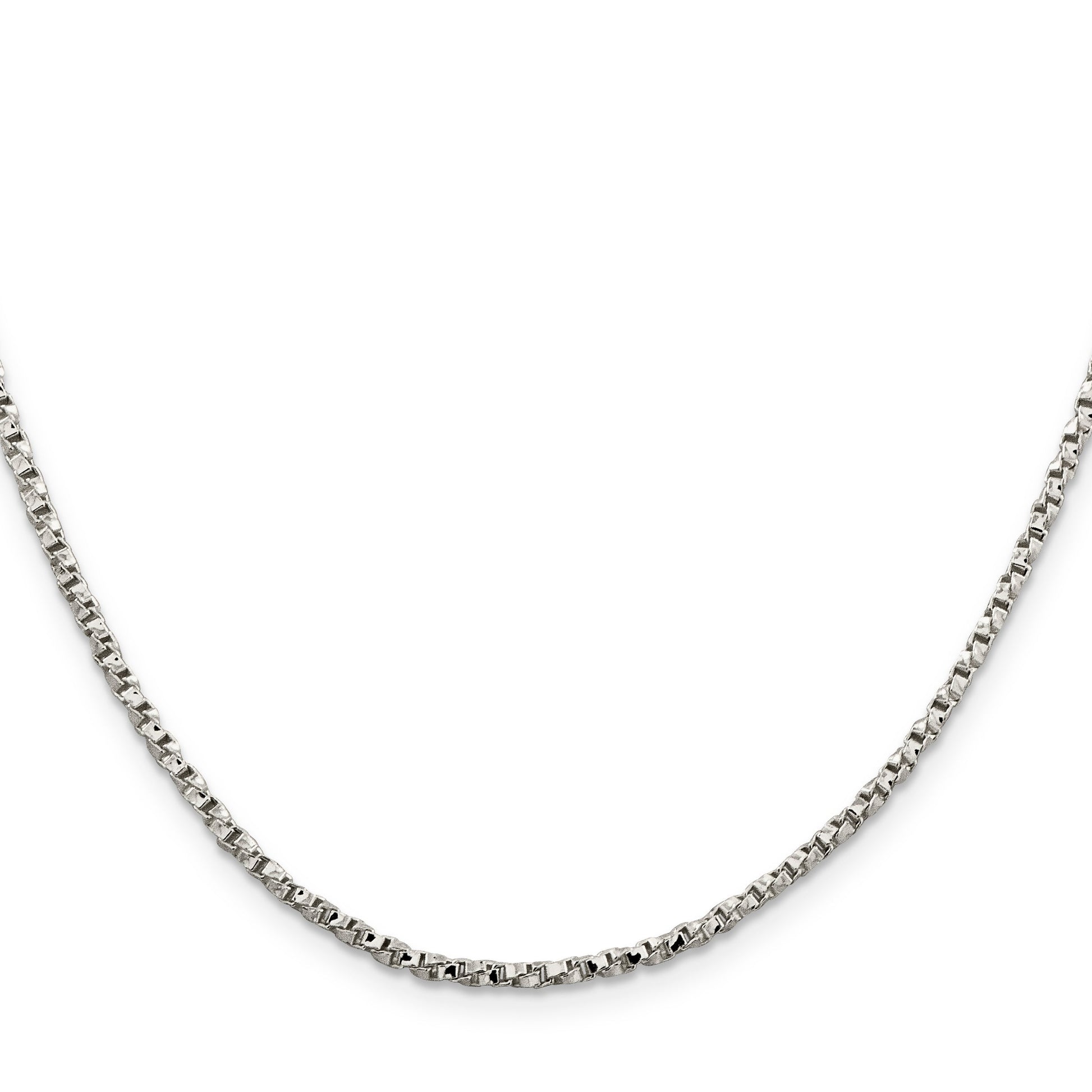 The 18-Inch Sterling Silver 2.25mm Twisted Box Chain radiates classic elegance. Made from genuine 925 sterling silver, this necklace boasts a polished finish. Its 18-inch length makes it perfect for layering with other favorites or wearing solo as a standout piece. With a 2.25mm width, the twisted box design adds a touch of texture and shine. This chain features a sturdy lobster clasp for secure wear, offering confidence in every closure. Effortlessly versatile, the 18-Inch Sterling Silver 2.25mm Twisted Box Chain is a must-have staple for any jewelry collection.