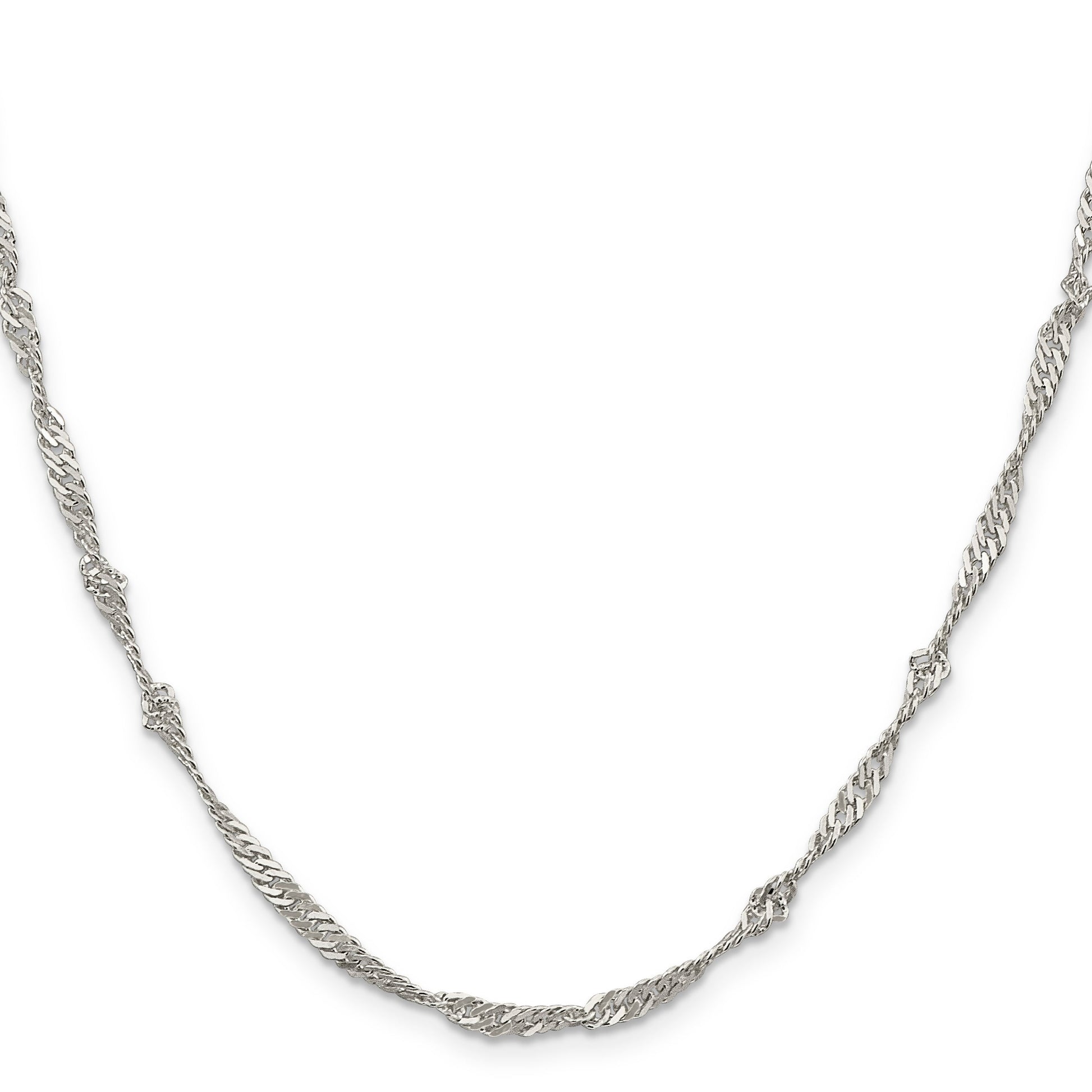 The 18 Inch Sterling Silver 3mm Singapore Chain is a must-have for any jewelry lover's collection. Crafted from 925 sterling silver, this chain gleams with a polished finish. Its Singapore design offers a unique texture and elegant drape, making it perfect for any occasion. The chain's 18-inch length and 3mm width provide a comfortable and stylish fit, while a solid lobster clasp ensures secure wear. This versatile piece complements any outfit, adding a touch of shine. Elevate your look with the 18 Inch Sterling Silver 3mm Singapore Chain today.