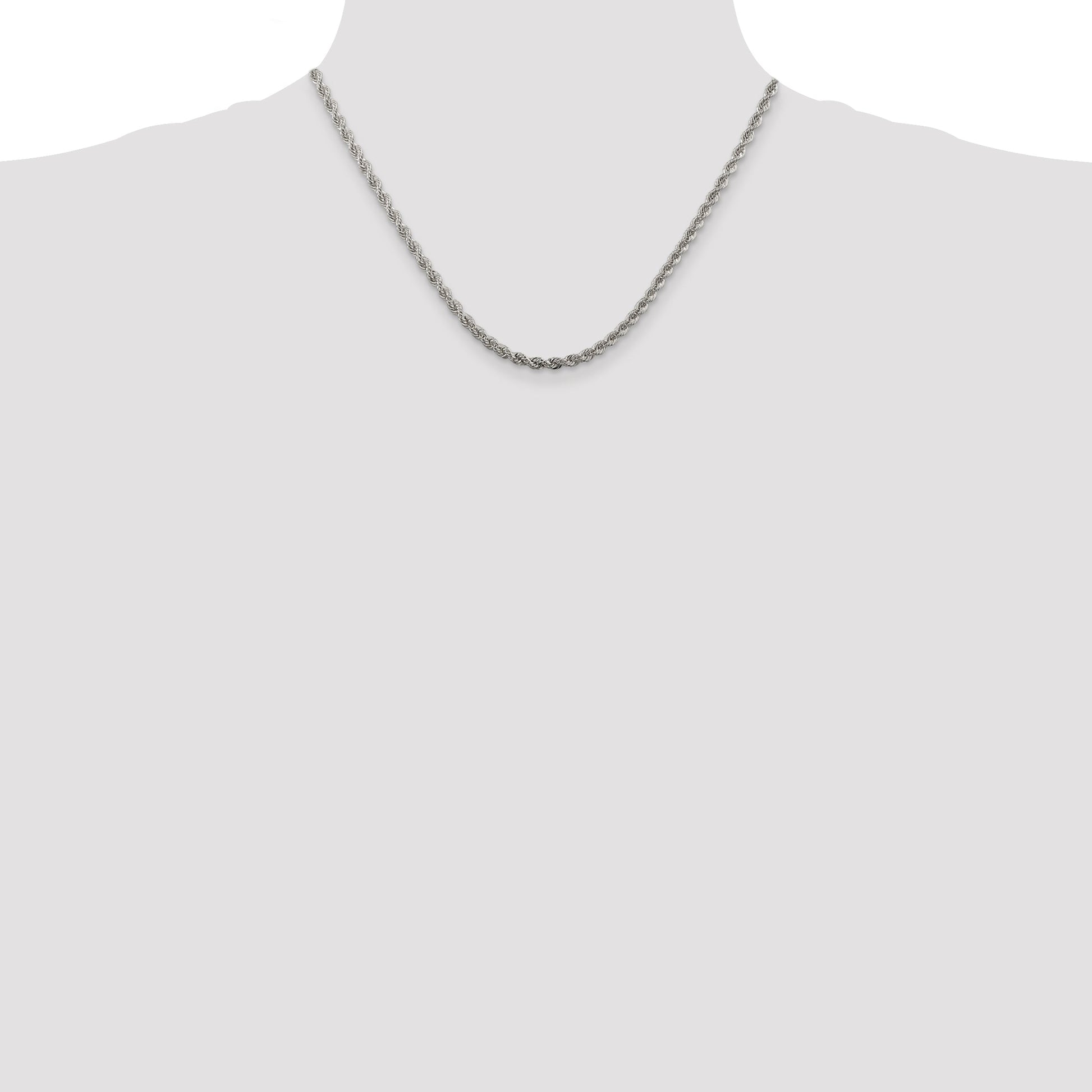 Introducing the 18-Inch Sterling Silver 3mm Solid Rope Chain, an exquisite piece for anyone who loves jewelry. This chain features a polished sterling silver finish with a purity of 925, ensuring quality and durability. Its solid rope design offers timeless elegance, crafted through a precise casting process. Measuring 18 inches in length, it's perfect for showcasing alone or with a pendant. The chain is 3mm wide and secured with a reliable lobster clasp, ensuring peace of mind. Anti-tarnish coating maintains the lustrous white hue. Elevate your look with this sophisticated 18-inch sterling silver rope chain.