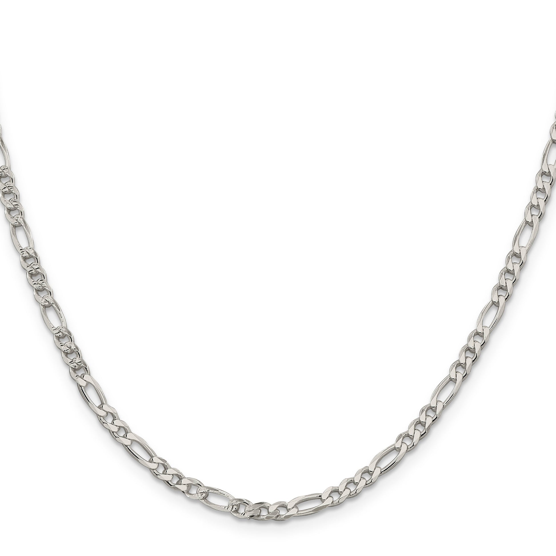 The 18 Inch Sterling Silver 4mm Pave Flat Figaro Chain is a striking addition to any jewelry collection. Crafted with top-grade 925 sterling silver, this necklace offers both durability and elegance. The polished finish exudes a radiant shine, while the anti-tarnish coating ensures long-lasting luster. Measuring 18 inches in length, the Figaro chain design adds a classic touch with its alternating link pattern. The 4mm width provides a substantial look without sacrificing elegance. A lobster clasp promises secure wear. Whether dressing up or down, the 18 Inch Sterling Silver 4mm Pave Flat Figaro Chain seamlessly elevates any outfit.