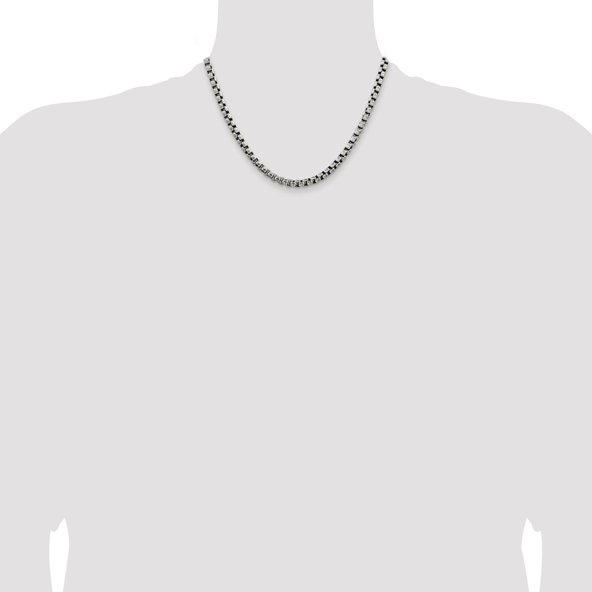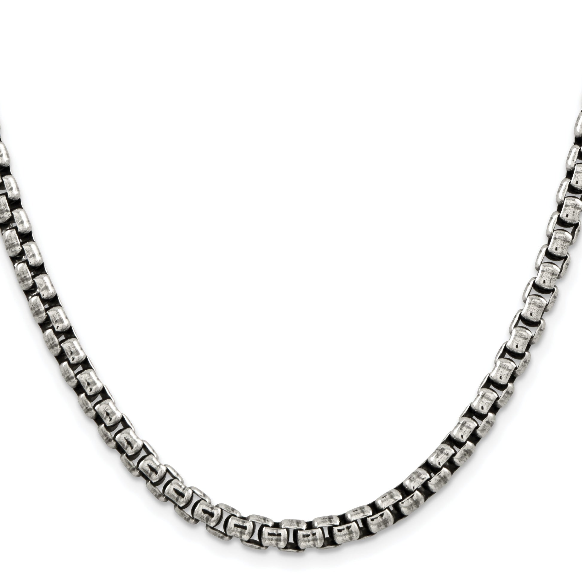 The 18 Inch Sterling Silver Antiqued 5.2mm Round Box Chain adds a touch of timeless elegance to any outfit. Crafted from 925 sterling silver, this necklace boasts a unique mix of polished and antiqued finishes. Its 5.2mm width shows off its robust style while maintaining a sleek look. The secure lobster clasp keeps your chain in place, offering both reliability and sophistication. Perfect for both men and women, this unisex necklace showcases fine craftsmanship through precise machine manufacturing. The 18 Inch Sterling Silver Antiqued 5.2mm Round Box Chain is a classic staple for any jewelry collection.