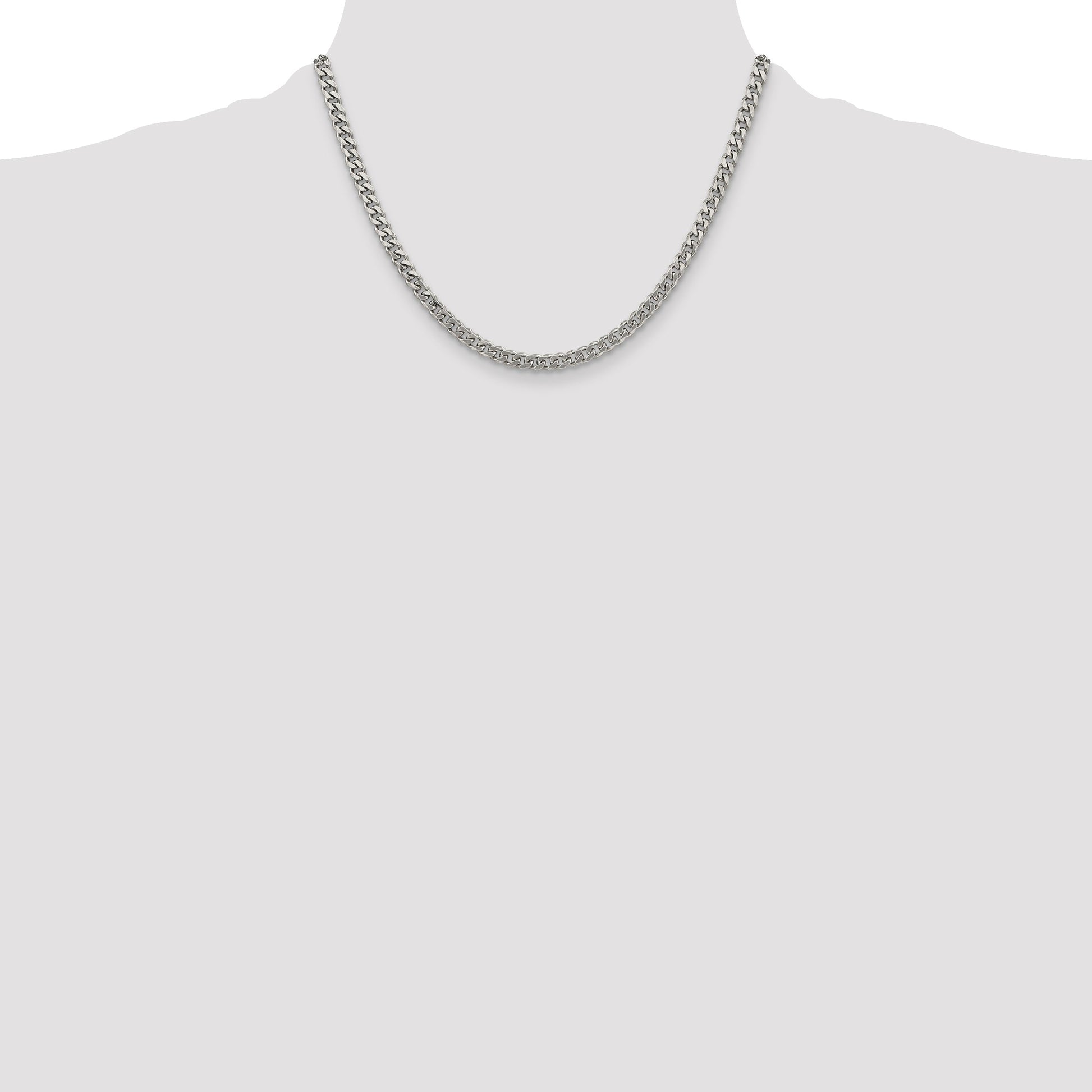 The 18 Inch Sterling Silver Rhodium-Plated 4.5mm Curb Chain is a timeless piece that adds a touch of elegance to any outfit. Crafted from 925 sterling silver, this polished necklace showcases a classic curb chain design. Its 4.5mm width provides a substantial look without being overpowering. The 18-inch length makes it the perfect accessory for both casual and formal settings. A sturdy lobster clasp ensures secure wear. This rhodium-plated chain offers a radiant silver tone that remains tarnish-resistant, keeping it looking sleek and stylish for years. Elevate your jewelry collection with this stunning 18 Inch Sterling Silver Rhodium-Plated 4.5mm Curb Chain.