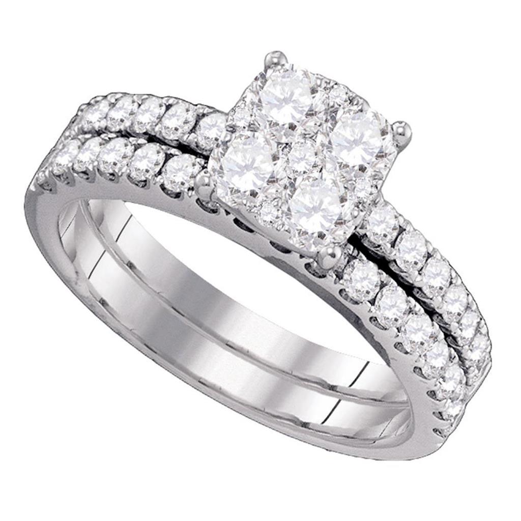 18k White Gold Round Diamond Bridal Wedding Ring Set 1-3/8 Cttw