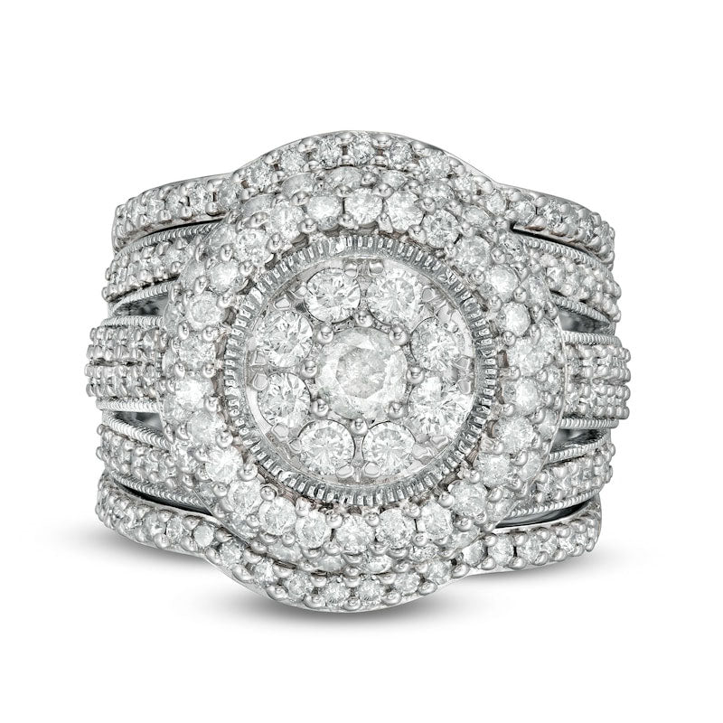 2.25 CT. T.W. Composite Natural Diamond Multi-Row Antique Vintage-Style Three Piece Bridal Engagement Ring Set in Solid 10K White Gold