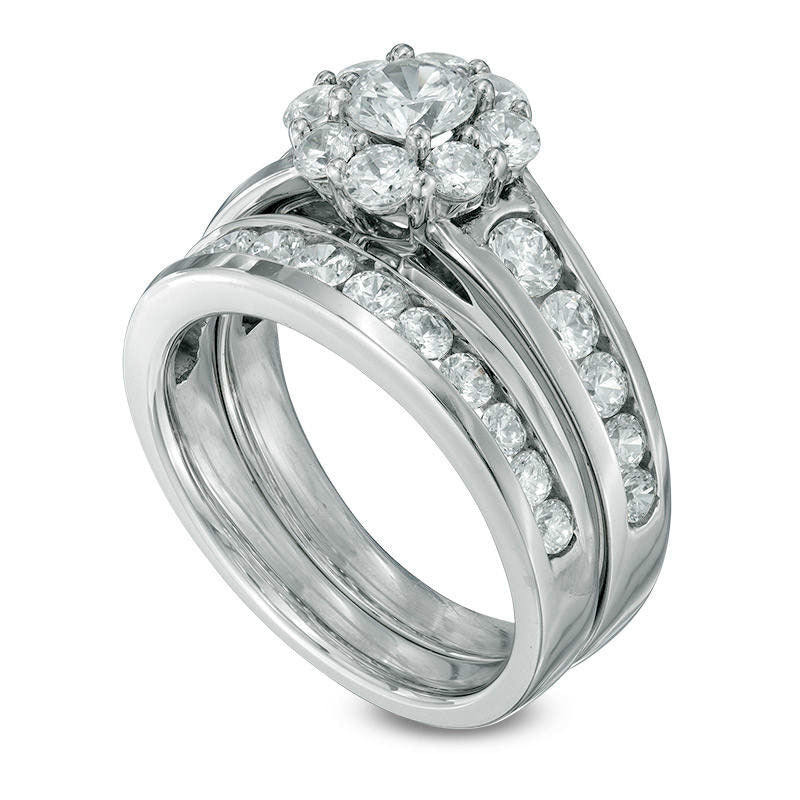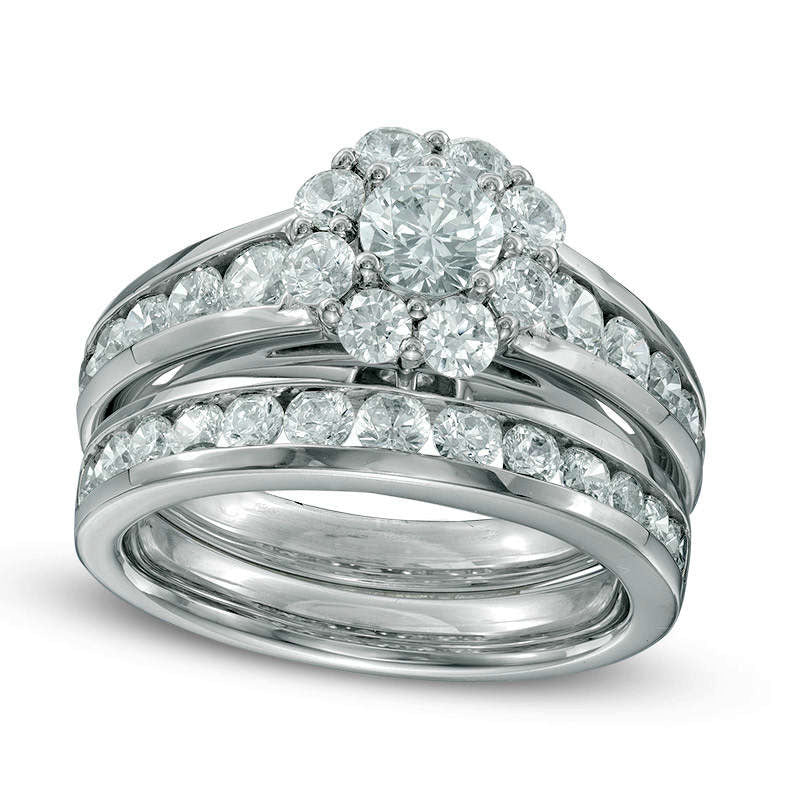 2.25 CT. T.W. Natural Diamond Flower Frame Bridal Engagement Ring Set in Solid 14K White Gold