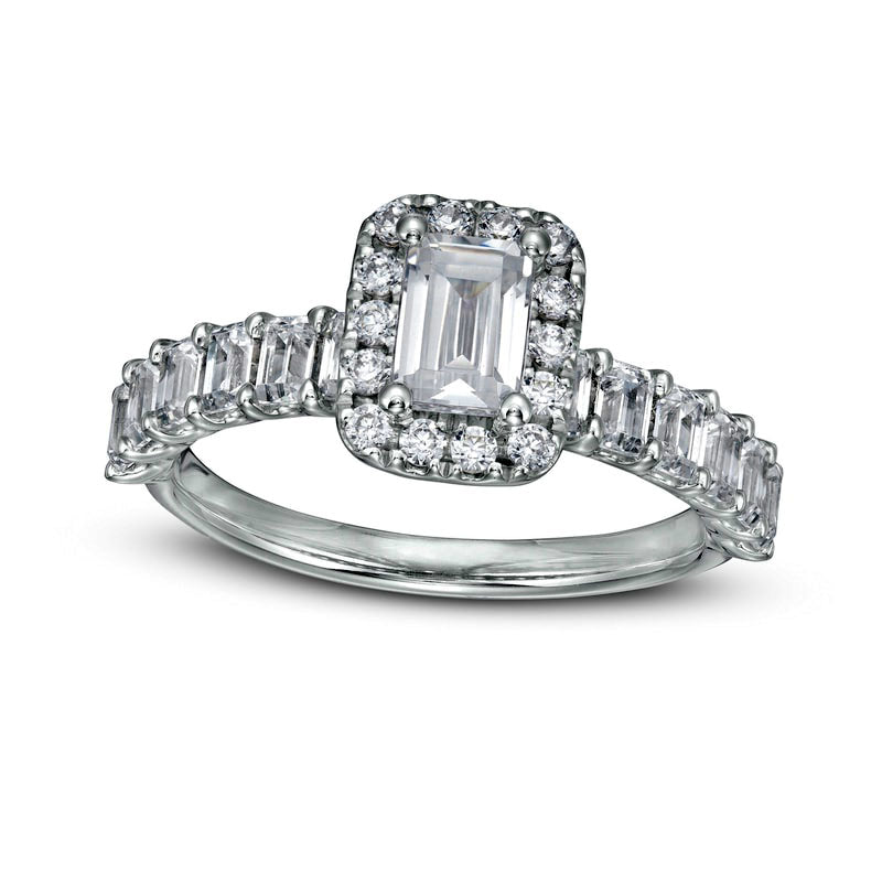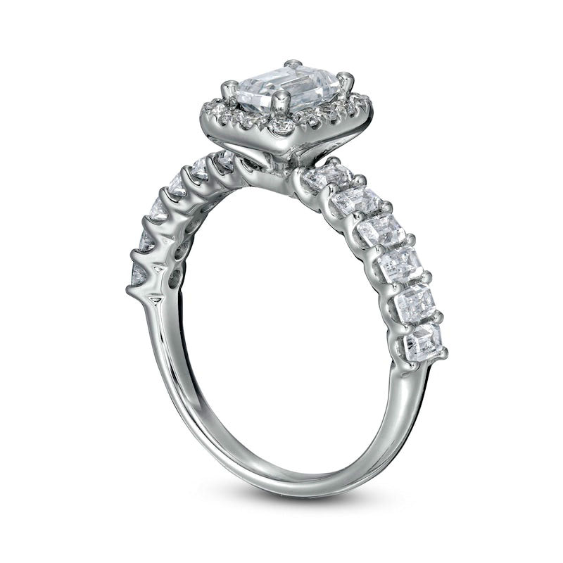 2.0 CT. T.W. Certified Emerald-Cut Natural Diamond Frame Engagement Ring in Solid 14K White Gold (I/SI2)