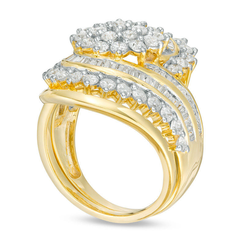 2.0 CT. T.W. Composite Natural Diamond Multi-Row Bypass Bridal Engagement Ring Set in Solid 10K Yellow Gold