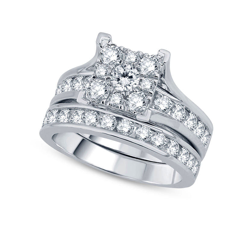 2.0 CT. T.W. Composite Natural Diamond Square Frame Bridal Engagement Ring Set in Solid 14K White Gold