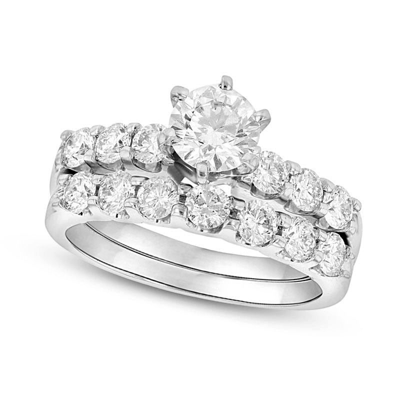 2.0 CT. T.W. Natural Diamond Bridal Engagement Ring Set in Solid 14K White Gold